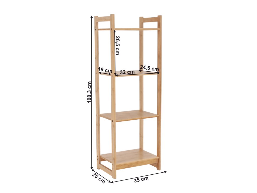 4-poličkový regál, přírodní bambus, IMPEROR TYP 2
