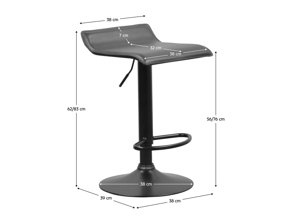 Díky výškově nastavitelnému sedadlu v rozmezí 56–76 cm se snadno přizpůsobí výšce barového pultu nebo pracovní desky. Součástí konstrukce je i opěrka na nohy pro vyšší komfort při delším sezení. Židle je lehká, snadno přemístitelná a přitom stabilní, s nosností až 100 kg. Povrchová odolnost ekokůže byla testována metodou Martindale na 100 000 oděrů, což zaručuje dlouhodobou životnost i při každodenním používání.