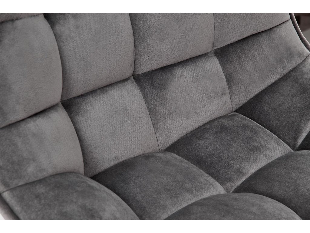 Barová židle VM095 představuje ideální spojení stylového designu a praktického využití. Šedé sametové čalounění s jemným prošíváním dodává židli nadčasový vzhled, který skvěle zapadne do moderních i klasických interiérů. Černá kovová konstrukce zajišťuje pevnost a stabilitu, zatímco opěrka nohou přispívá k maximálnímu pohodlí při sezení.