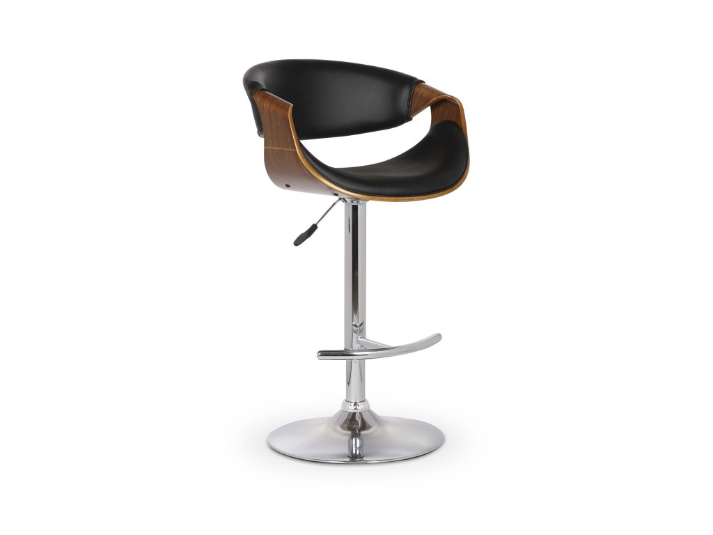Barová židle VM100 představuje stylovou kombinaci ohýbané překližky v barvě ořechu, černého čalounění z ekokůže a pevné chromované oceli. Tento design s industriálním nádechem se výborně hodí do moderních interiérů ve stylu loft, ale také do domácích kuchyní, barů či restaurací. Pohodlný a měkký sedák, opěrák a područky zaručují komfort i při delším sezení, a díky výškovému nastavení a otočnému mechanismu si židli snadno přizpůsobíte svým potřebám.