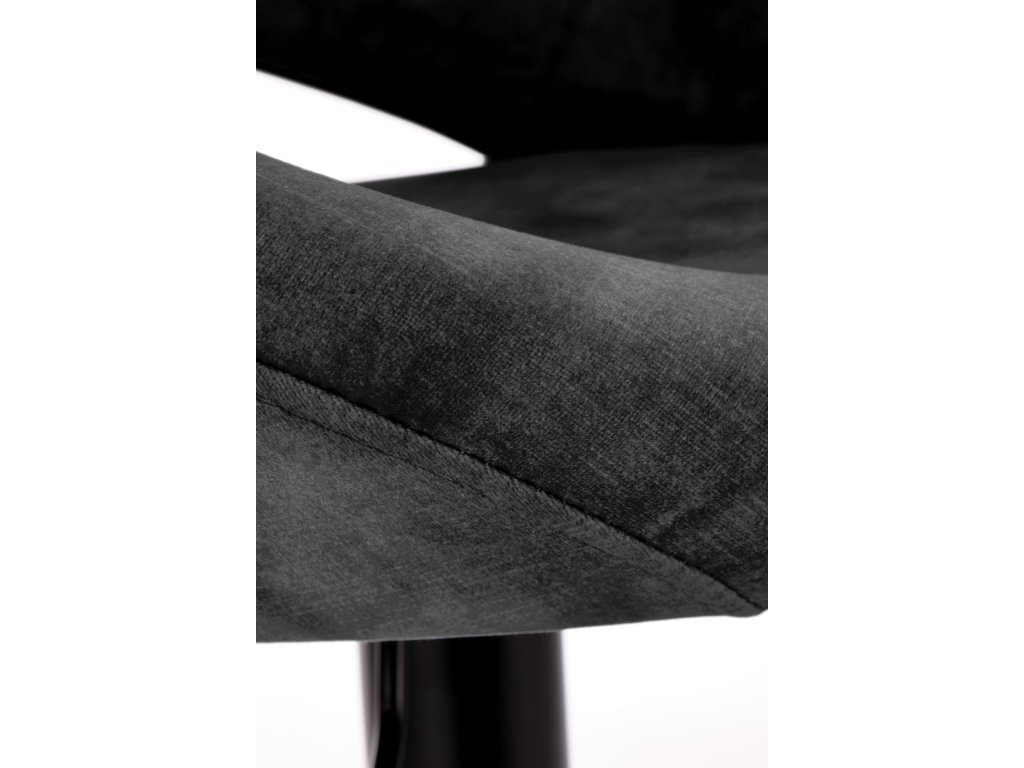 Barová židle VM102 v černém sametovém provedení v sobě spojuje moderní design a funkční komfort. Elegantní tvar opěráku plynule navazuje na čalouněný sedák, což vytváří harmonický a vkusný celek. Potah z jemného sametu působí luxusně a mění svůj odstín podle dopadu světla. Sametová látka je příjemná na dotek a patří k oblíbeným trendům v interiérovém designu.