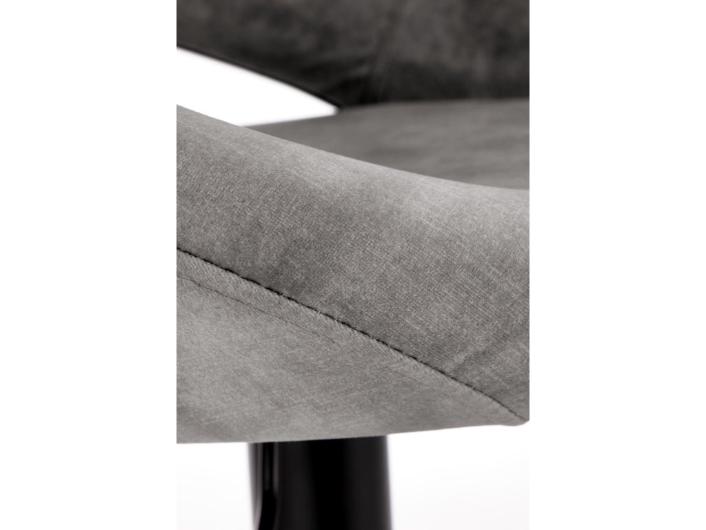 Barová židle VM102 v elegantní šedé barvě kombinuje stylový vzhled s každodenní praktičností. Opěrák s jemným zaoblením plynule přechází v čalouněný sedák, čímž vzniká kompaktní a vizuálně čistý design. Sametový potah je měkký, příjemný na dotek a mění odstín podle směru světla, což dodává židli jemný vizuální efekt.