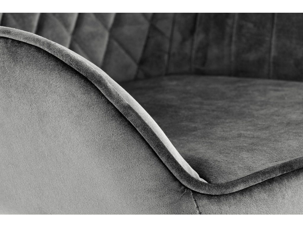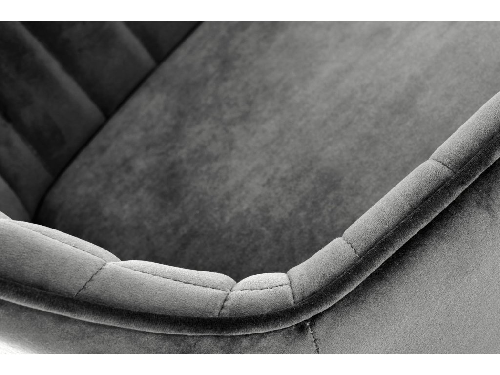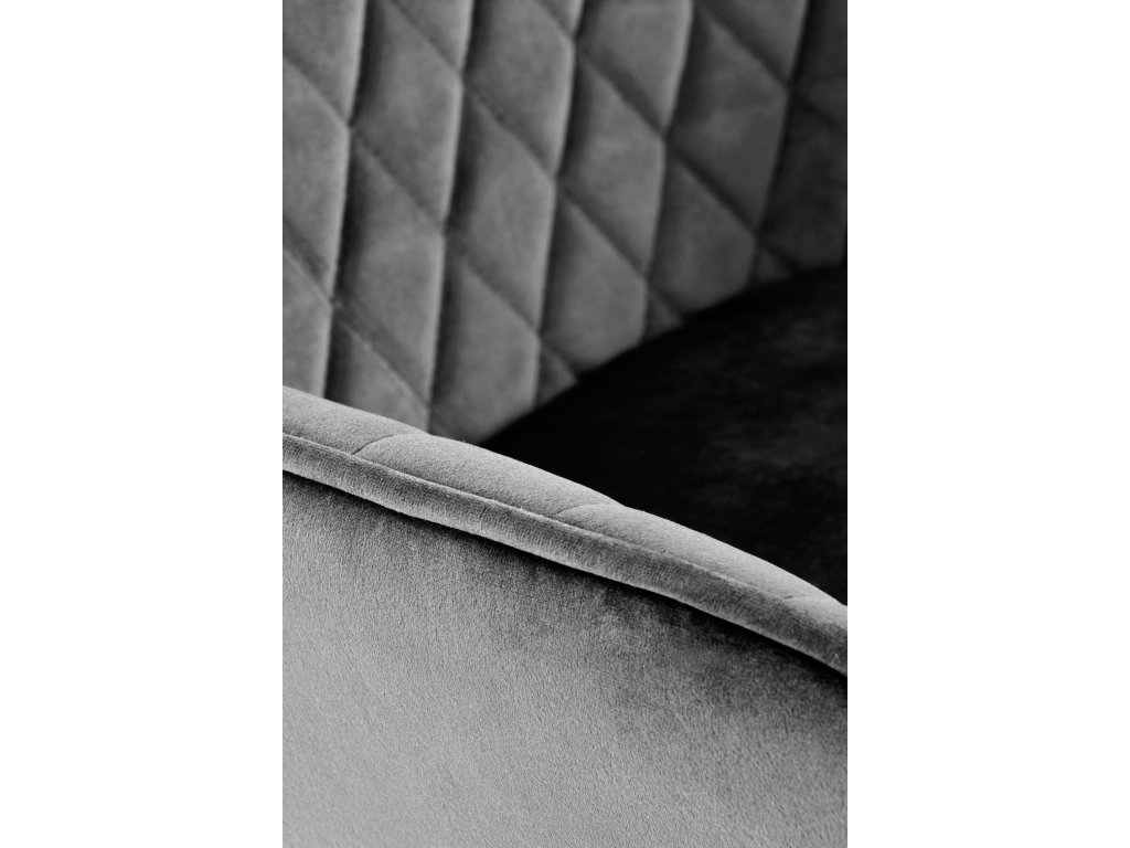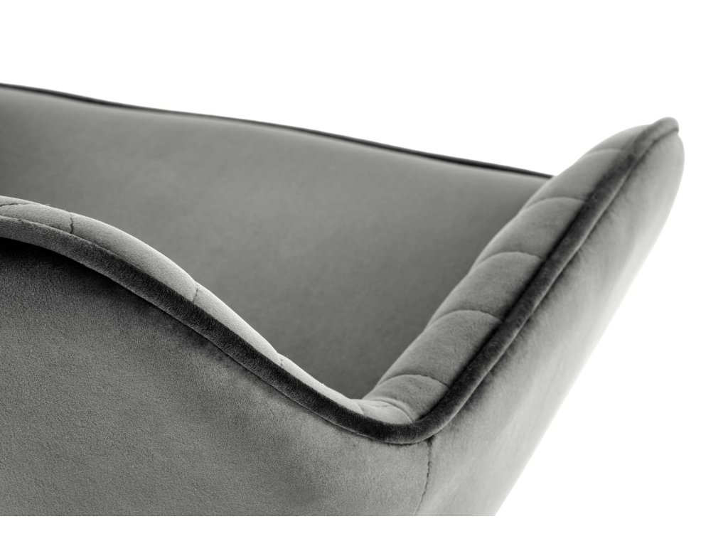 Židle je čalouněná sametovou látkou v šedém odstínu, která působí nadčasově a zároveň je vysoce odolná proti nečistotám. Nastavitelná výška sedu v rozmezí 62–84 cm umožňuje pohodlné přizpůsobení výšce pultu. Kovová konstrukce s praktickou podnožkou poskytuje stabilitu i pohodlí při delším sezení. Nosnost židle je až 120 kg.