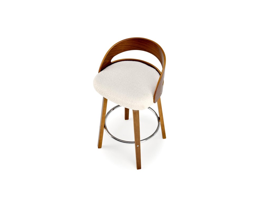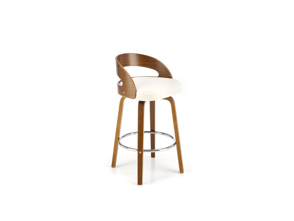 Barová židle VM110 je originální kus nábytku, který skvěle doplní moderní interiér. Díky kombinaci krémového sedáku z příjemné buclé látky a nohou z ohýbané překližky v dekoru ořech působí elegantně a zároveň útulně.