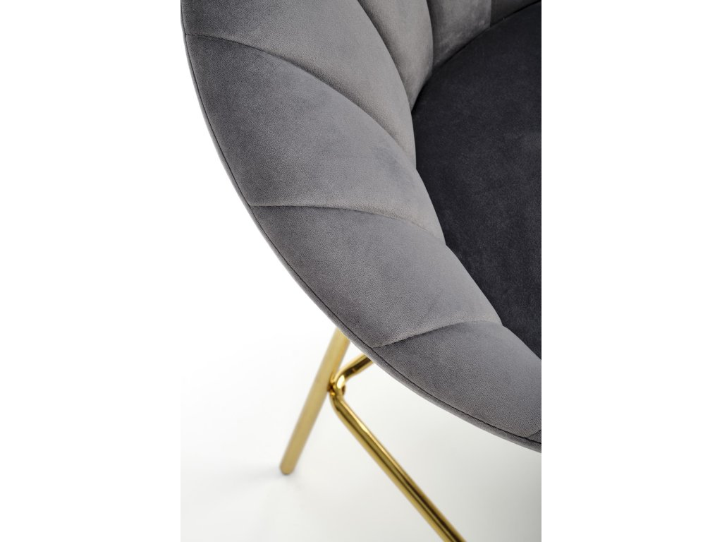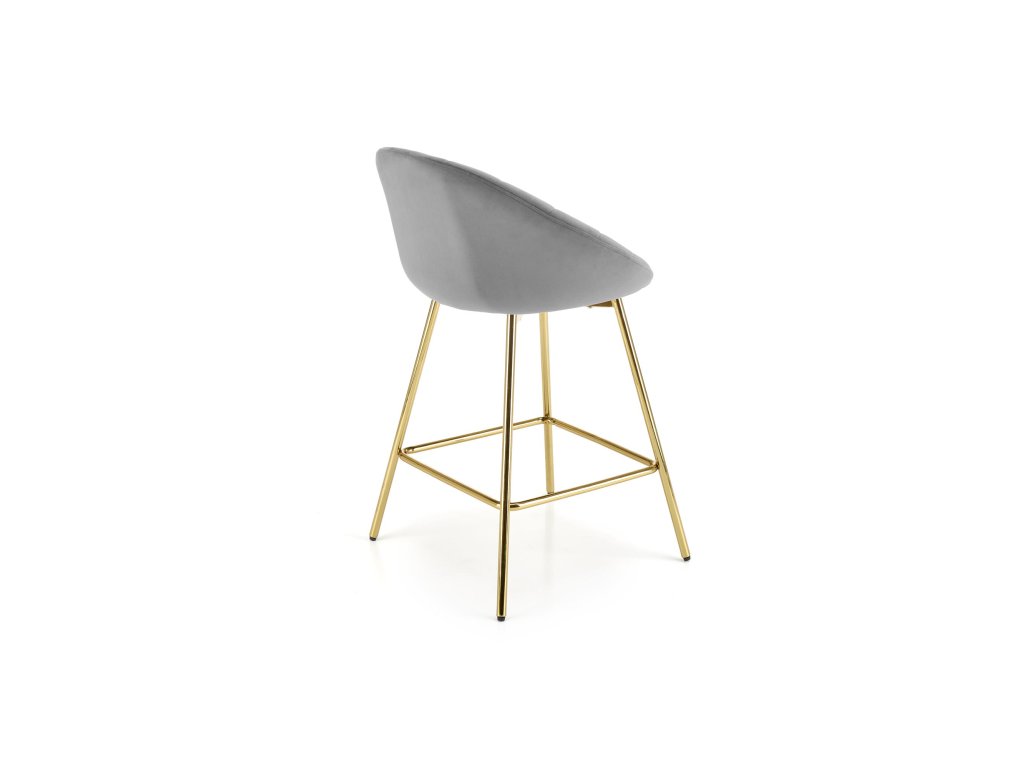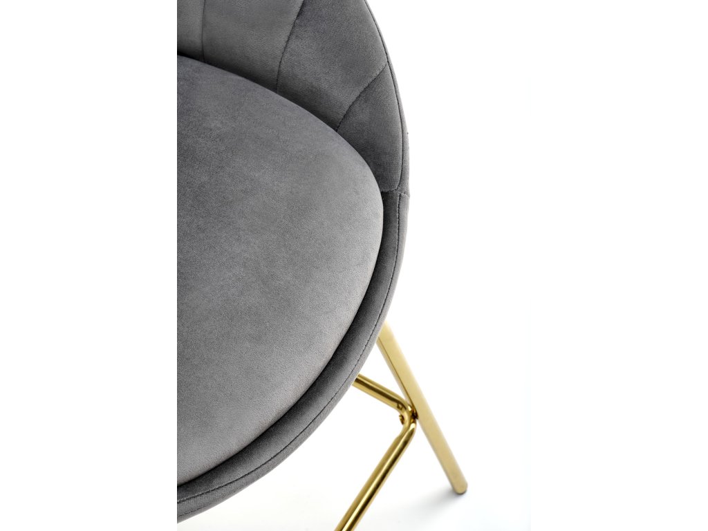 Barová židle VM112 v šedém provedení je ideální volbou pro moderní kuchyně, jídelní kouty i domácí bary. Vyniká nadčasovým designem, který kombinuje eleganci sametového čalounění s luxusním vzhledem zlatě chromovaných nohou.