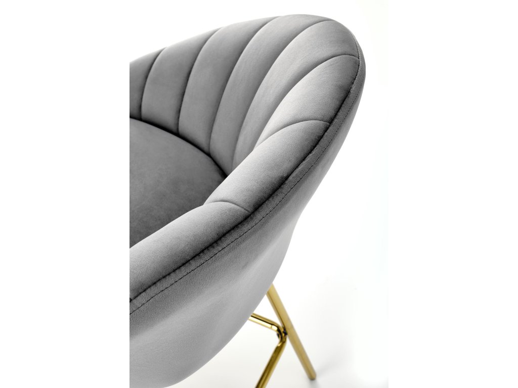 Sedák židle je potažen měkkou sametovou látkou v elegantní šedé barvě, která je nejen příjemná na dotek, ale i velmi estetická. Opěradlo je zdobené jemným vertikálním prošíváním, které dodává židli atraktivní vzhled. Stabilní kovová konstrukce s ocelovou oporou zajišťuje pevnost, pohodlí a dlouhou životnost.