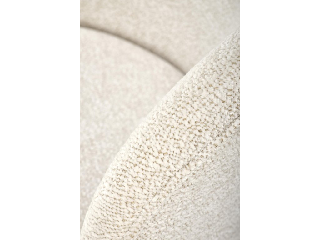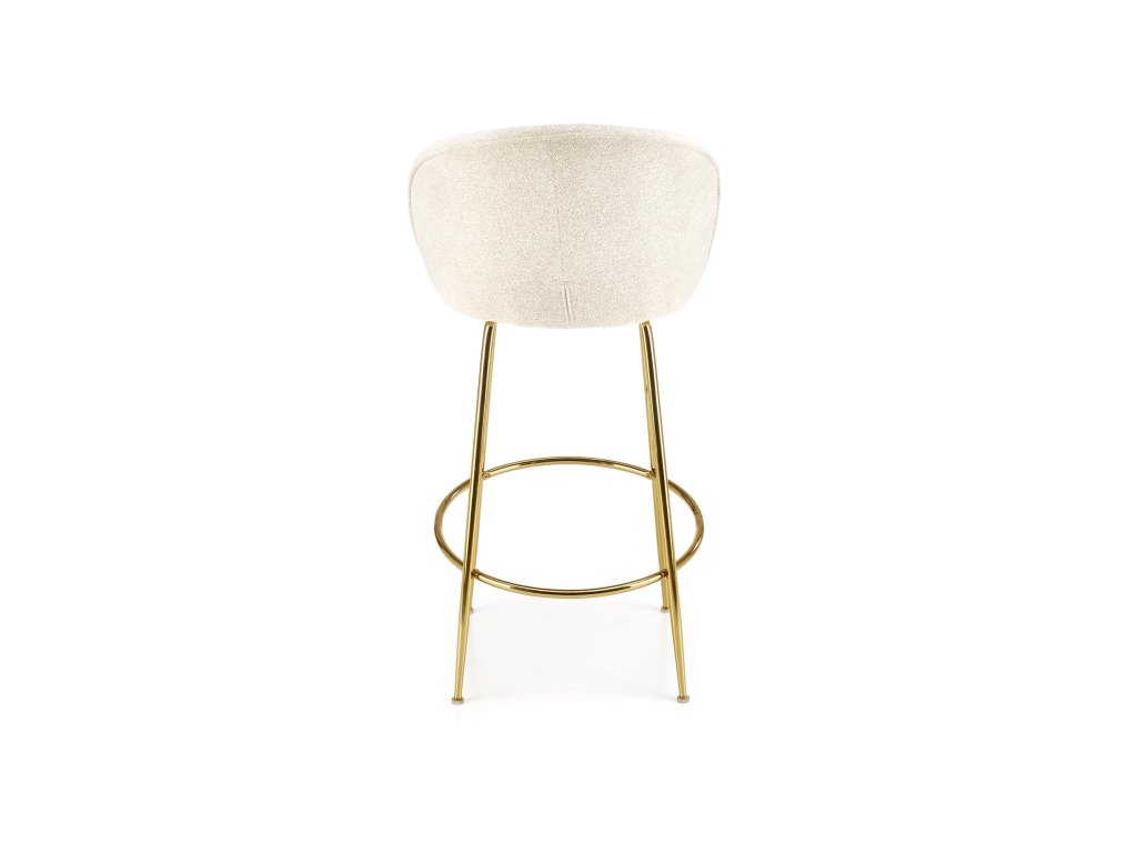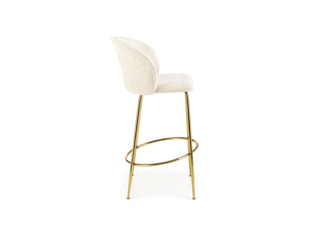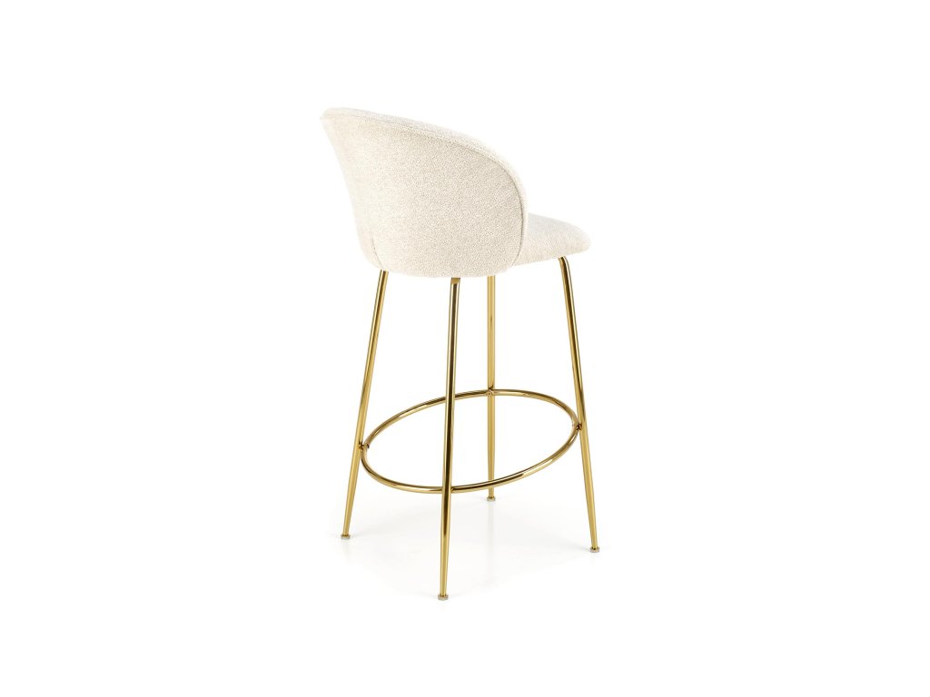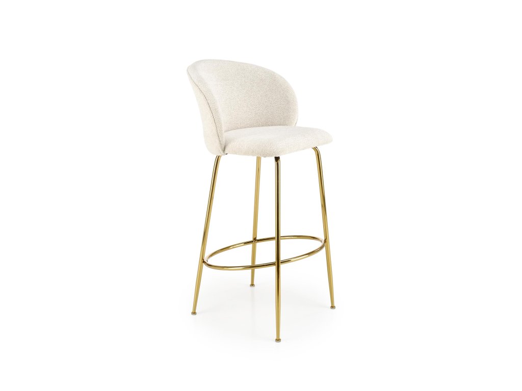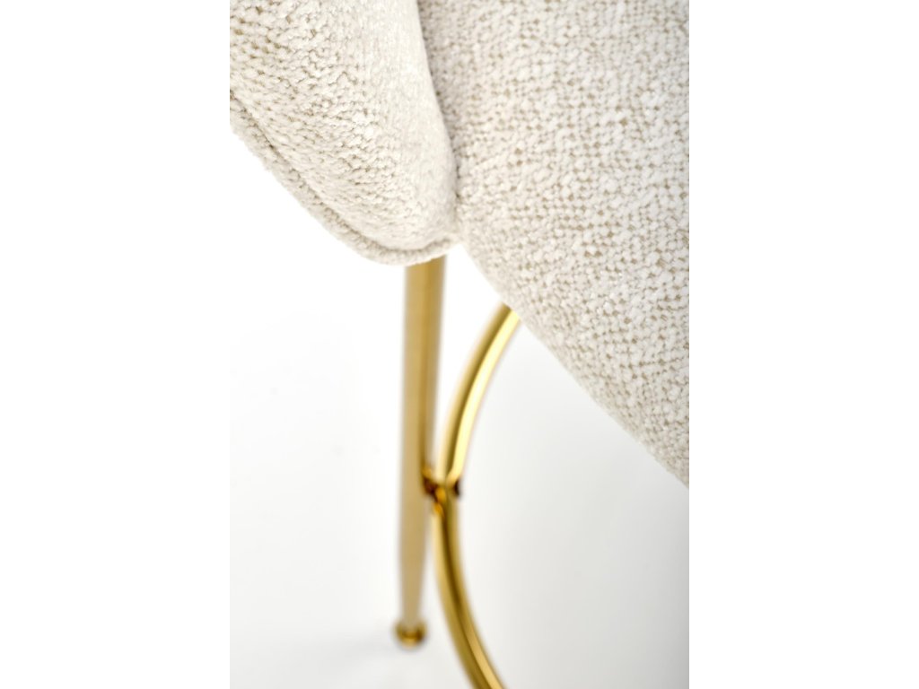 Židle stojí na čtyřech stabilních nohách z chromované oceli ve zlatém odstínu. Ty jsou propojeny ocelovým lemem, který zároveň slouží jako pohodlná opora pro nohy. Sedák i opěrák jsou čalouněny kvalitní látkou v jemně krémové barvě, která je měkká na dotek a příjemná na delší sezení.