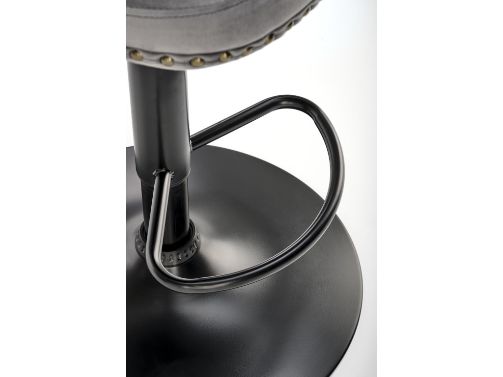 Černá kovová noha s podnožkou zajišťuje vysokou stabilitu a pevnost. Díky plynovému pístu lze snadno nastavit výšku sedu od 62 do 84 cm, což umožňuje přizpůsobení různým výškám stolů či kuchyňských ostrůvků. Nosnost židle je 120 kg.