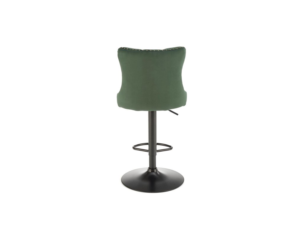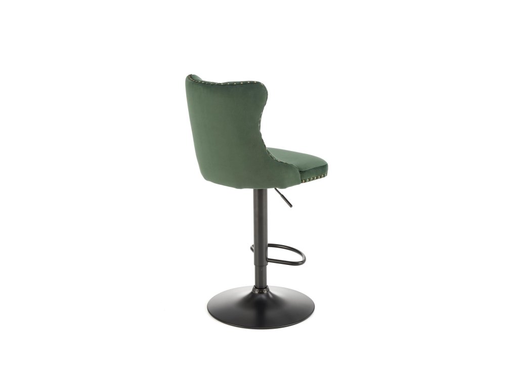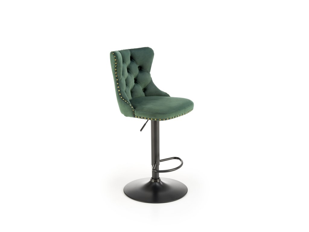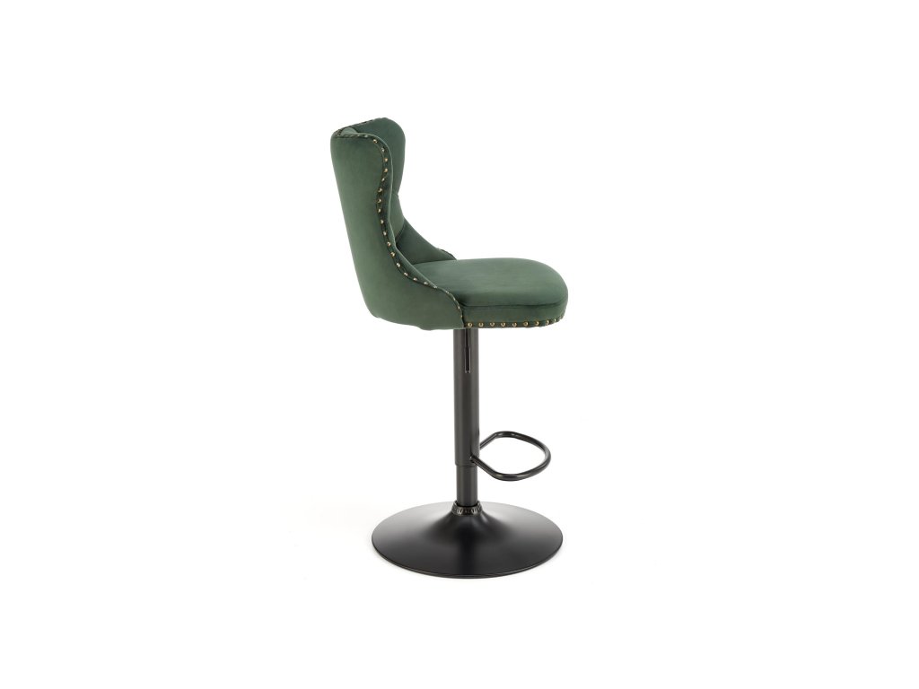 Barová židle VM117 je elegantní kus nábytku, který spojuje pohodlí s moderním glamour designem. Čalounění z tmavě zelené sametové látky s prošívaným opěrákem a ozdobnými starožitnými zlatými nýty dodává židli výrazný charakter a vizuální přitažlivost. Sametová tkanina je nejen na pohled luxusní, ale také velmi příjemná na dotek.