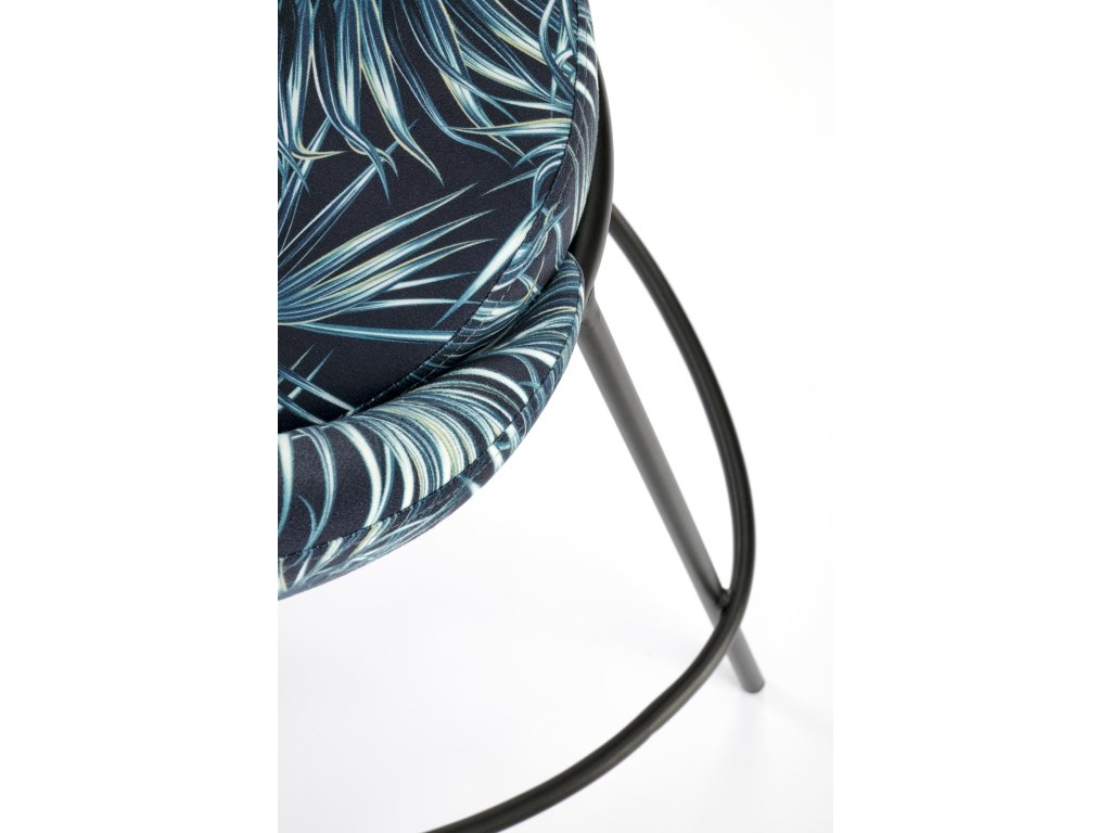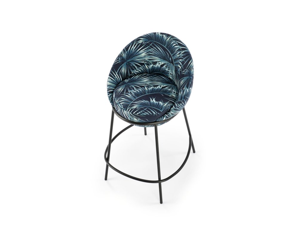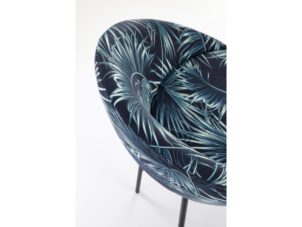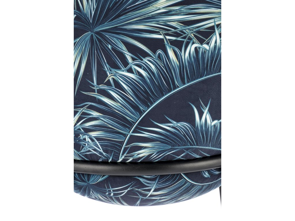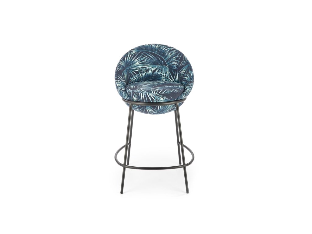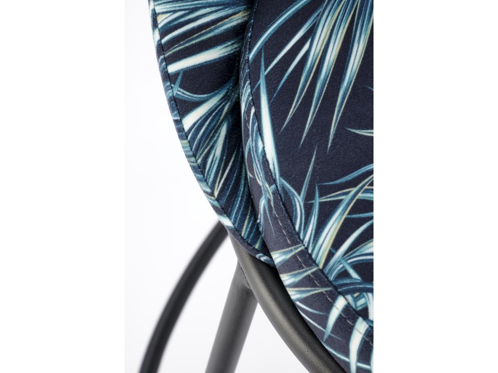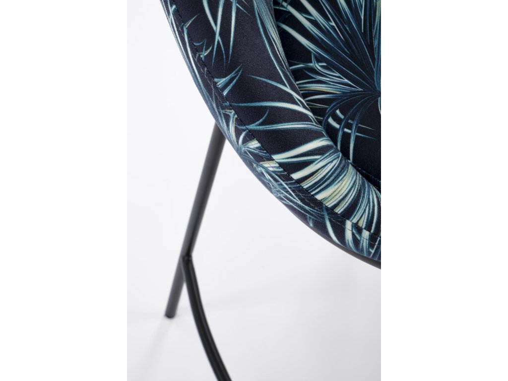 Sedák židle je čalouněný kvalitní vícebarevnou látkou, která je příjemná na dotek a vizuálně zajímavá. Čtyři nohy z práškově lakované oceli zajišťují stabilní konstrukci s dlouhou životností. Kovová obruba mezi nohami slouží jako praktická podnožka pro ještě větší pohodlí při sezení.
