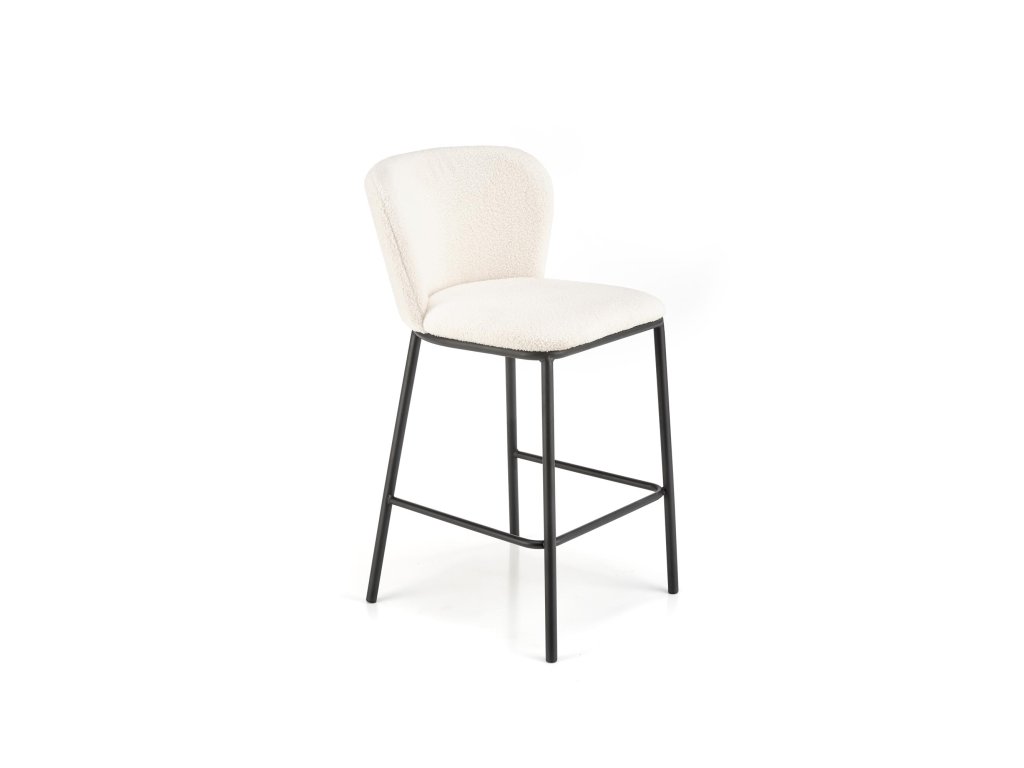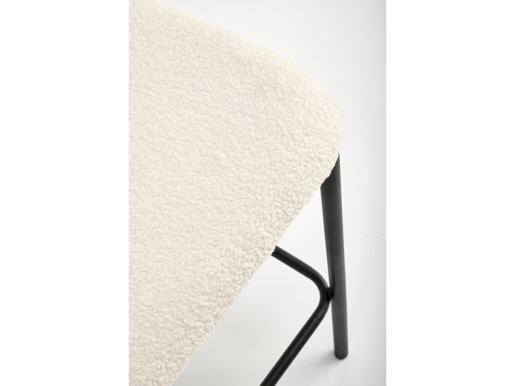 Barová židle VM119 v elegantní krémové barvě nabízí ideální kombinaci pohodlí a moderního designu. Sedák a opěrka jsou čalouněné kvalitní bounclé látkou, která díky svým charakteristickým smyčkám připomíná jemný beránčí vzhled. Tato textura nejen dodává židli originální a útulný vzhled, ale je také příjemná na dotek, což zvyšuje komfort při sezení.