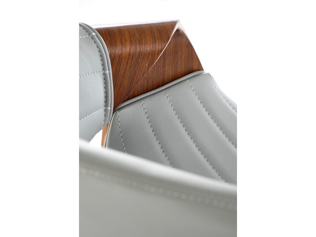 Čalounění z šedé ekokůže, které se snadno udržuje a dodává židli elegantní vzhled.
