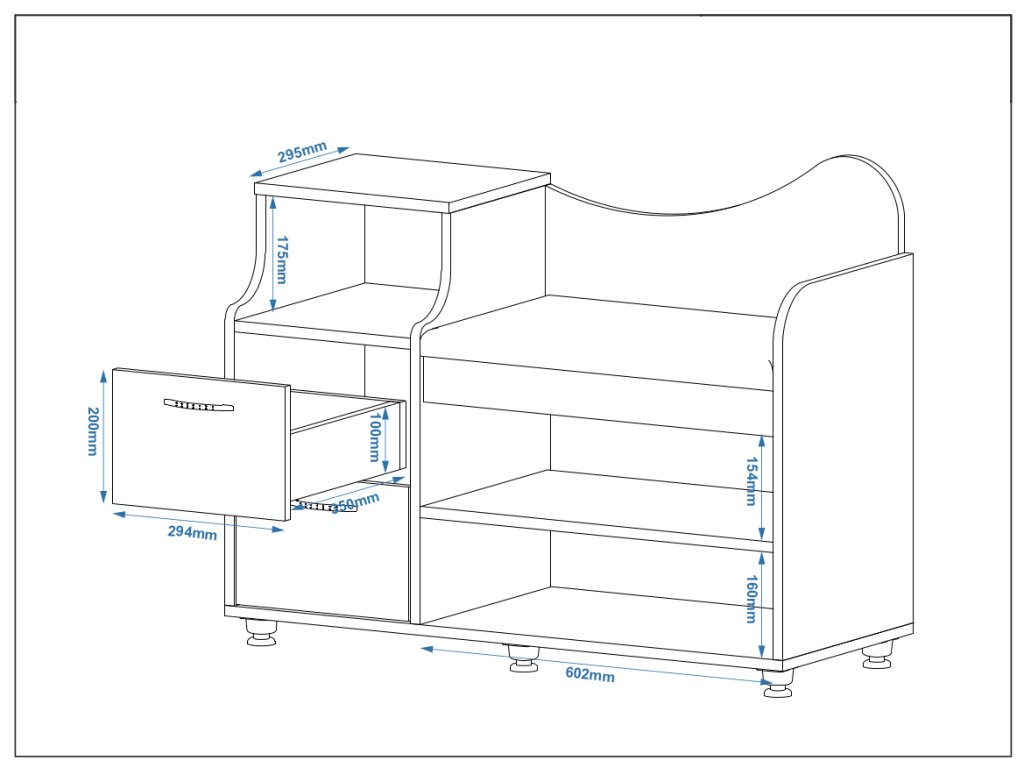 • Praktické zásuvky: Zásuvky jsou ideální pro úschovu klíčů, rukavic, čepic nebo dalších drobností, které chcete mít vždy po ruce.