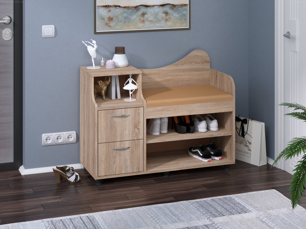 Sedací botník B-02 se sedákem, policemi na boty a zásuvkami