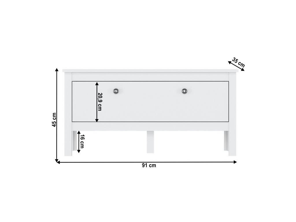 Rozměry: 91 × 35 × 45 cm, výška nožiček 16 cm