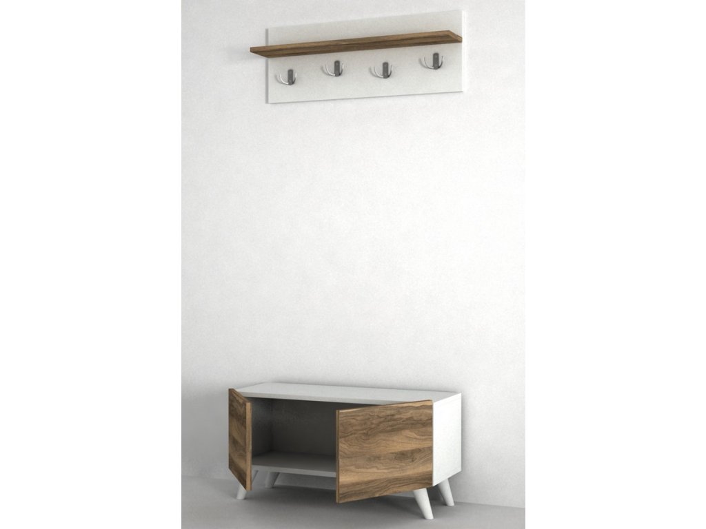 ANA botník s věšákem, bílá / ořech – praktický a stylový doplněk do předsíně