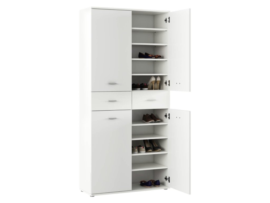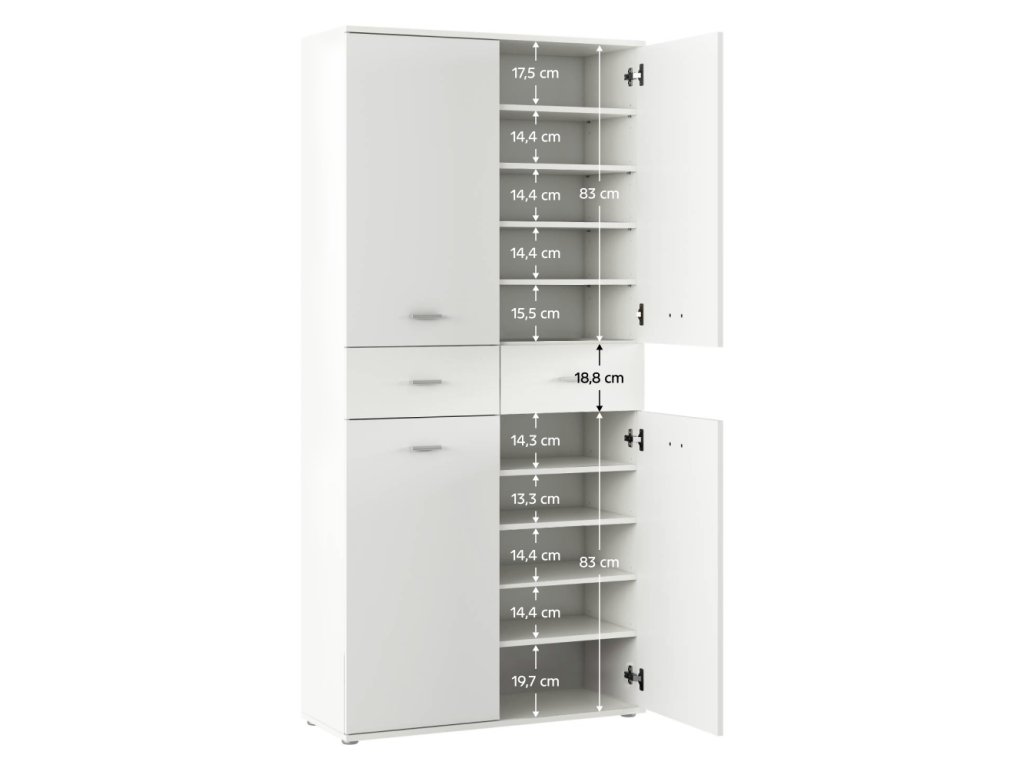 Botníková skříň VILOT v čistě bílém provedení je ideálním doplňkem do moderní i klasicky zařízené předsíně nebo chodby. Díky neutrální barvě prostor opticky rozjasní a zároveň nabídne praktické a přehledné uložení obuvi i dalších drobností.