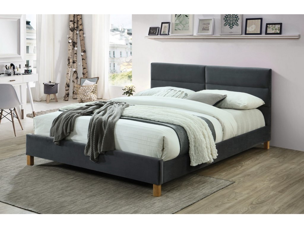 Čalouněná postel s prošívaným čelem. Konstrukce je z kvalitního přírodního dřeva potažena látkou aksamit v béžové barvě. Nožky jsou v barvě dub, vysoké 10 cm. Rošt je součástí postele ( klasický lamelový rošt v plastových pouzdrech ). Matraci je nutno doobjednat o rozměrech 160 x 200 cm nebo 2 ks 80 x 200 cm. Dodáváme v demontovaném stavu.