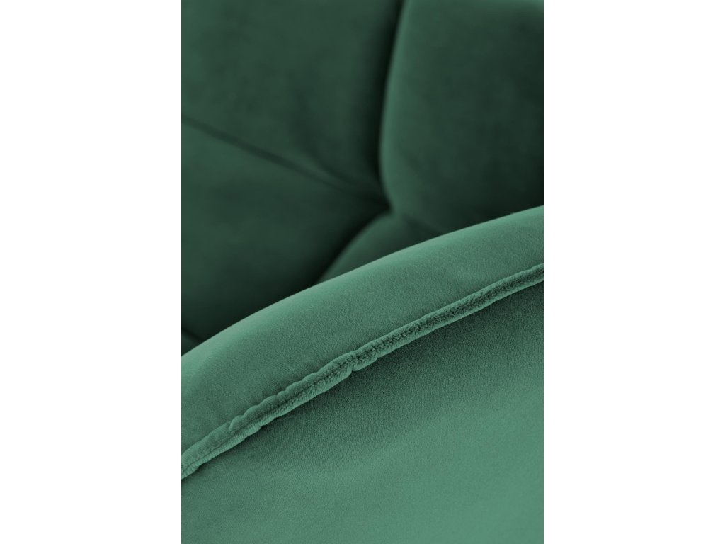 Křeslo BRENDAO v elegantní tmavě zelené barvě je ideálním doplňkem moderního interiéru. Stabilní konstrukce na tvarovaných nohách z černé práškově lakované oceli zaručuje pevnost a odolnost. Vysoké, profilované opěradlo spolu s praktickými bočnicemi poskytují maximální oporu a komfort při sezení. Sedák s jemným zaoblením a dekorativním prošíváním dodává křeslu nadýchaný a sofistikovaný vzhled.