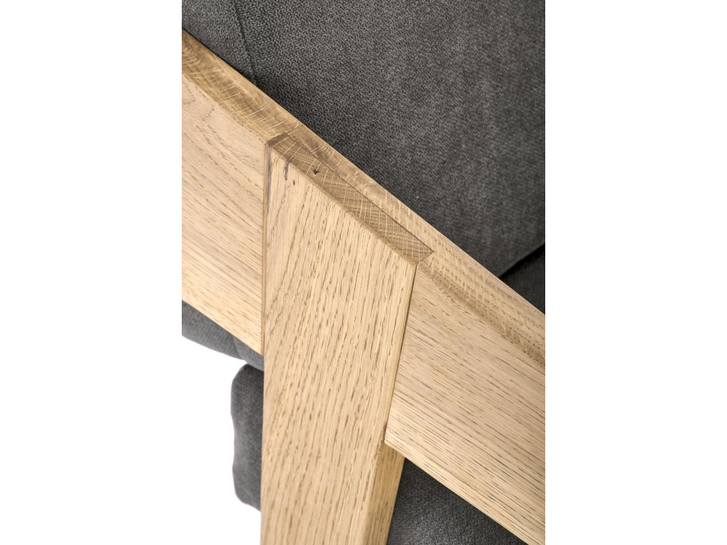 Křeslo KELVIN s područkami je promyšleným prvkem interiéru, který v sobě spojuje stylovou jednoduchost a pohodlí. Díky svému provedení z masivního dubového dřeva a originálnímu šedému čalounění skvěle zapadne do moderních, skandinávských i industriálních interiérů.