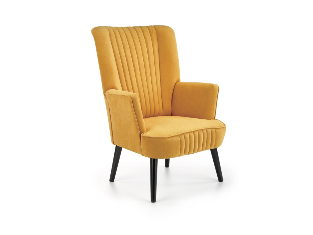 Čalouněné křeslo SAMUEL hořčicové – designové sametové křeslo pro váš domov