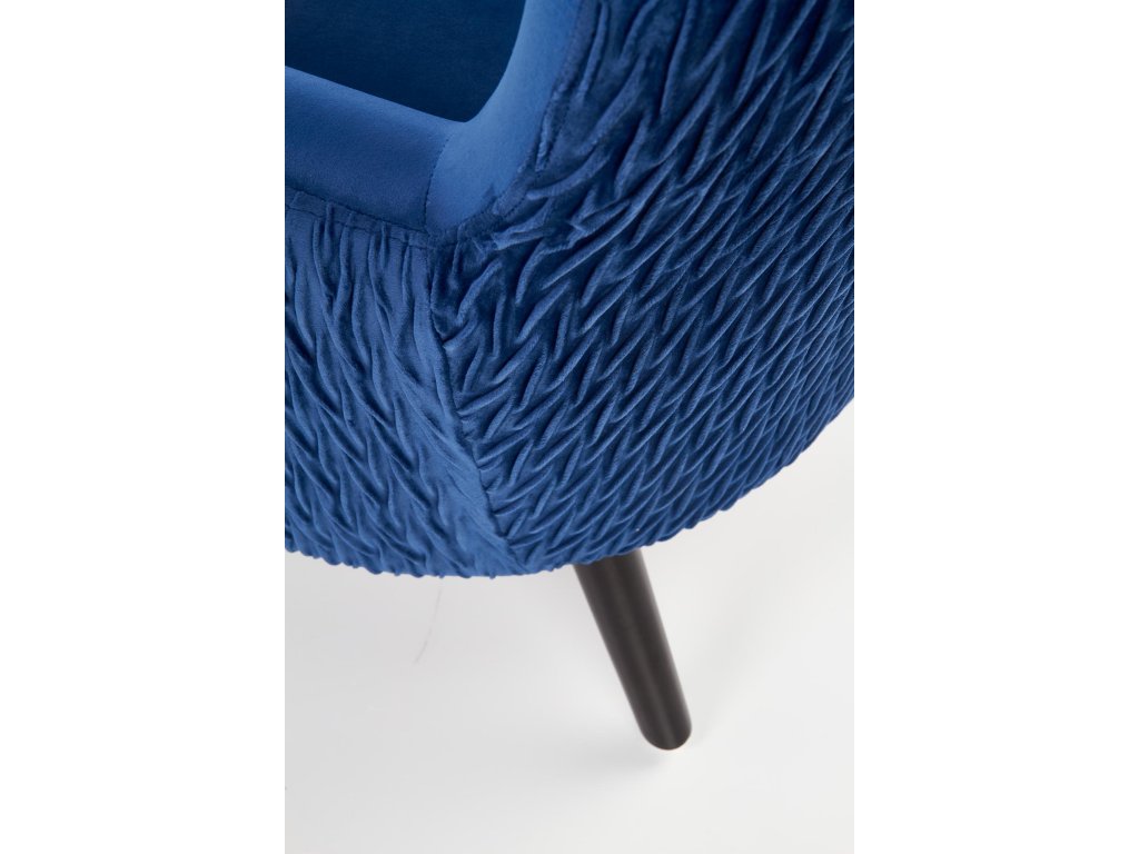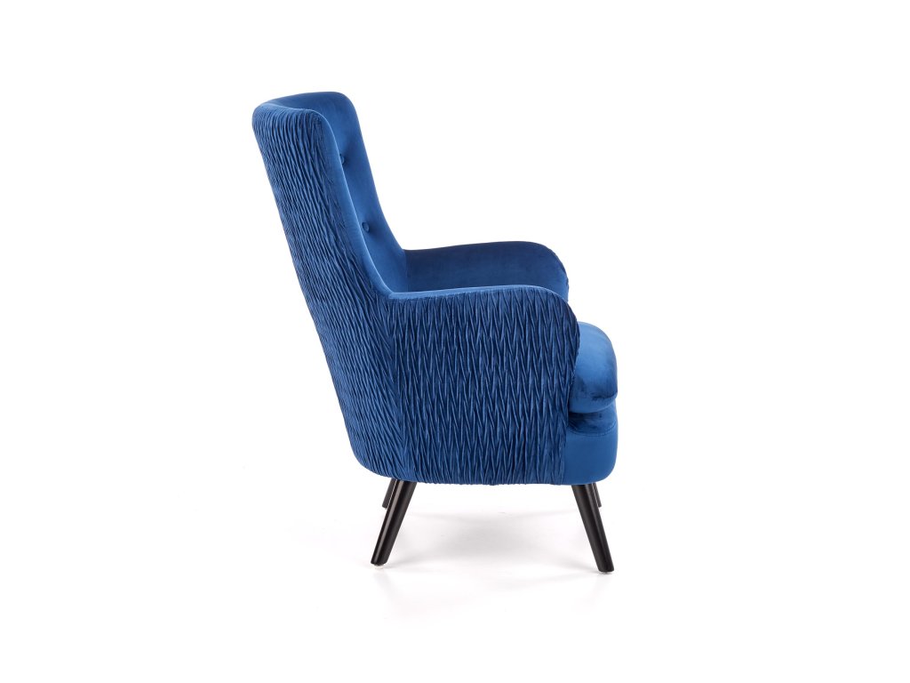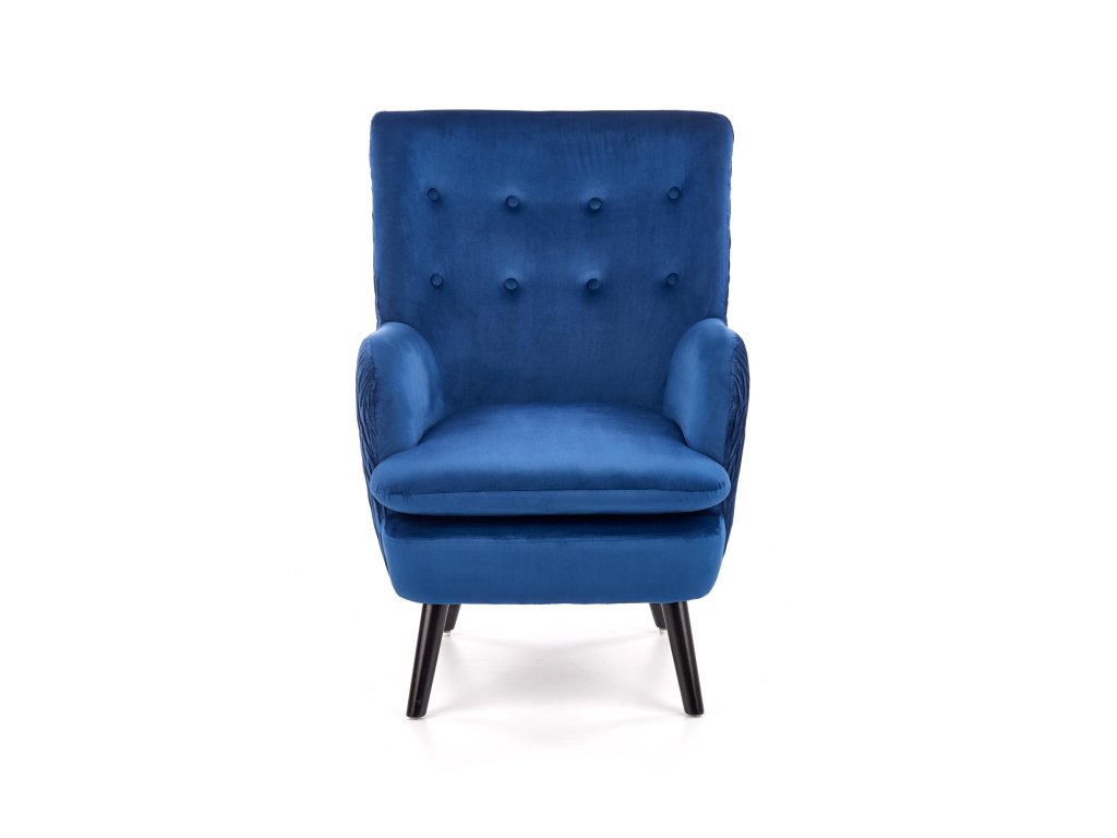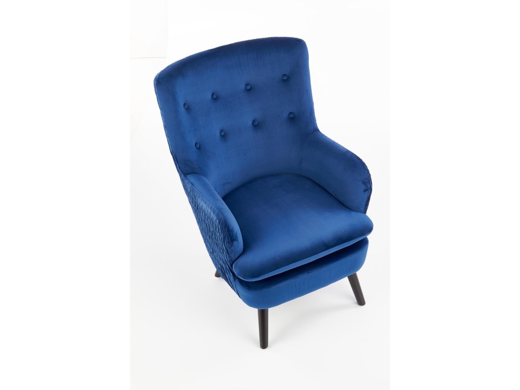 Křeslo je potažené kvalitní sametovou látkou s jemným leskem, která podtrhuje jeho sofistikovaný vzhled. Prošívání s dekorativními knoflíky na opěradle dodává křeslu jedinečný charakter a eleganci. Masivní dřevěné nohy v přírodním odstínu zajišťují pevnost a stabilitu.