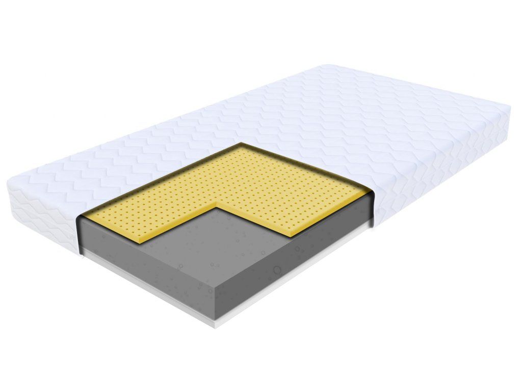 Vrchní vrstva z latexu se dokonale přizpůsobuje křivkám těla a zajišťuje maximální pohodlí při spánku. Latex je přirozeně hypoalergenní a brání množení roztočů, plísní a bakterií, což ocení zejména alergici.