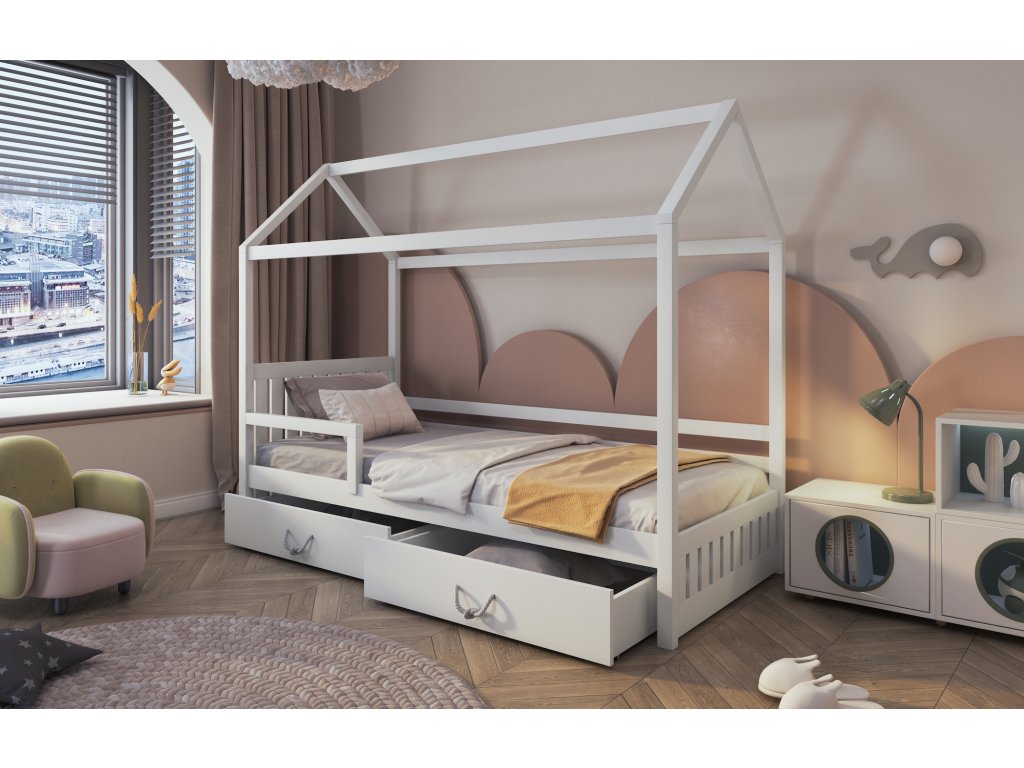 Dětská postel domeček MICHAELA II 80x200 + ROŠT a ZÁSUVKY v ceně