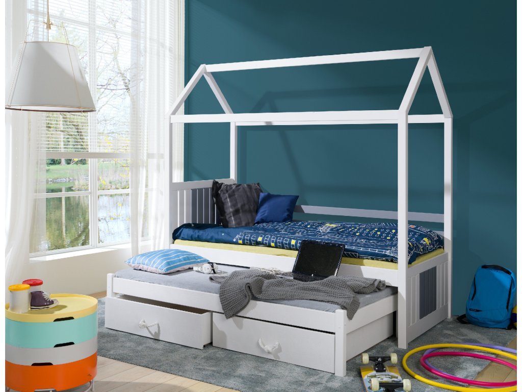Dětská postel domeček s přistýlkou CLAUDIA 80x180 + ROŠTY a ZÁSUVKY v ceně