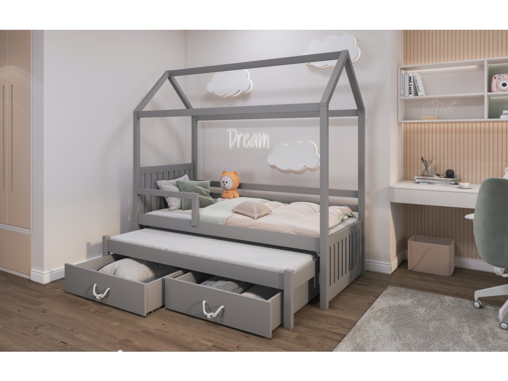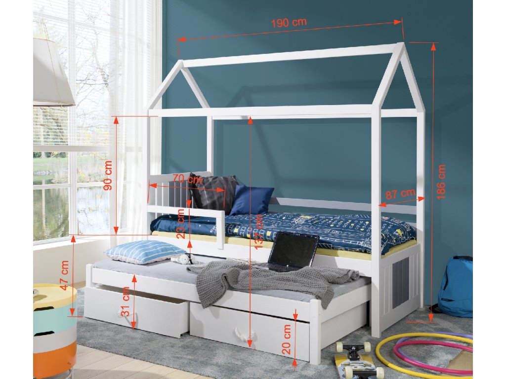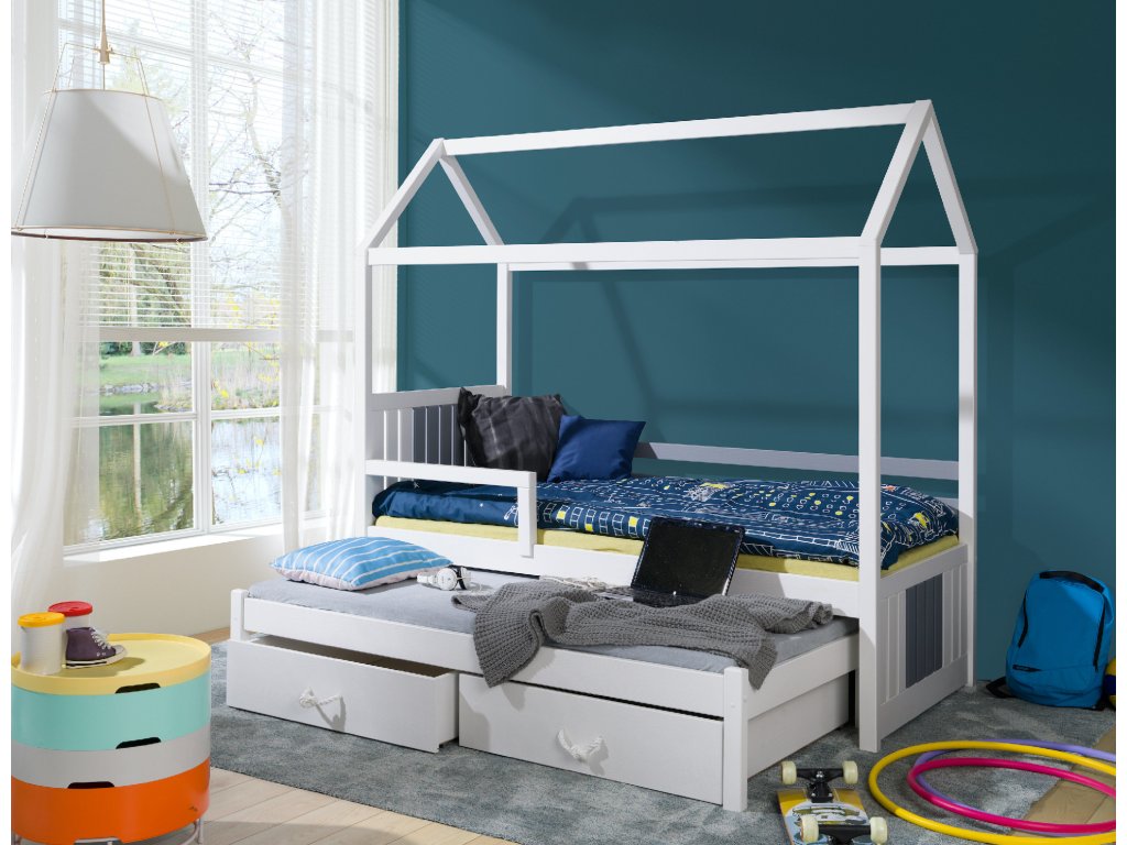 Dětská postel domeček s přistýlkou CLAUDIA II 90X190 + ROŠTY a ZÁSUVKY v ceně