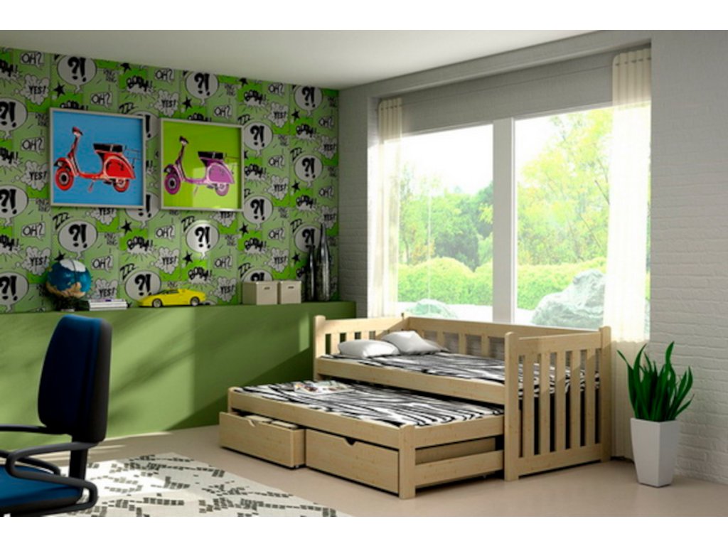 Dětská postel s přistýlkou DELA PINE 80x180 vč. roštů + ŠUPLÍKY