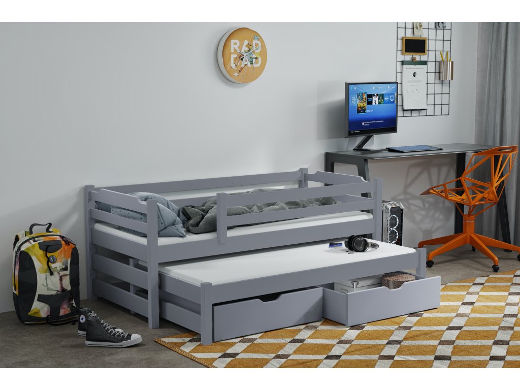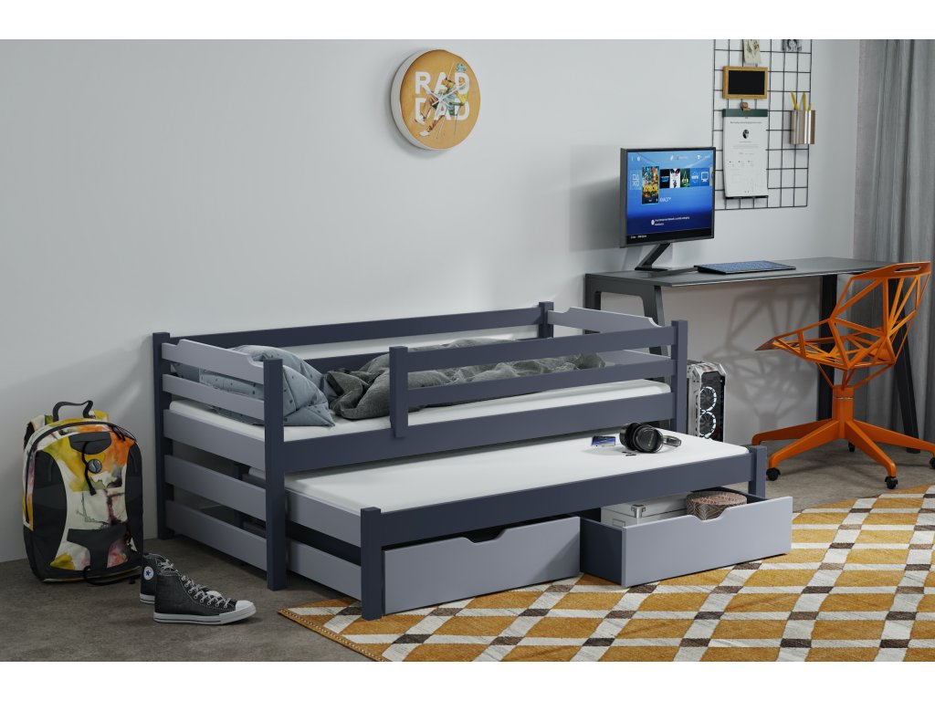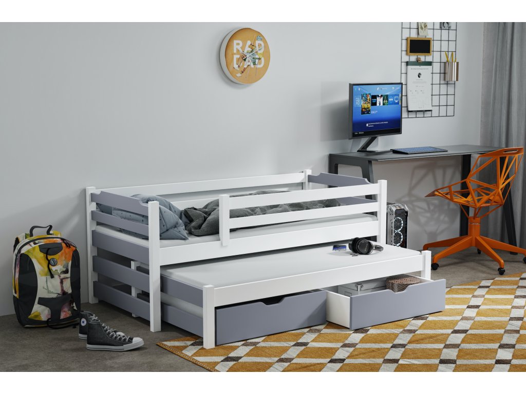 Dětská postel s přistýlkou RUDI II 80X200 + ROŠTY a ZÁSUVKY v ceně