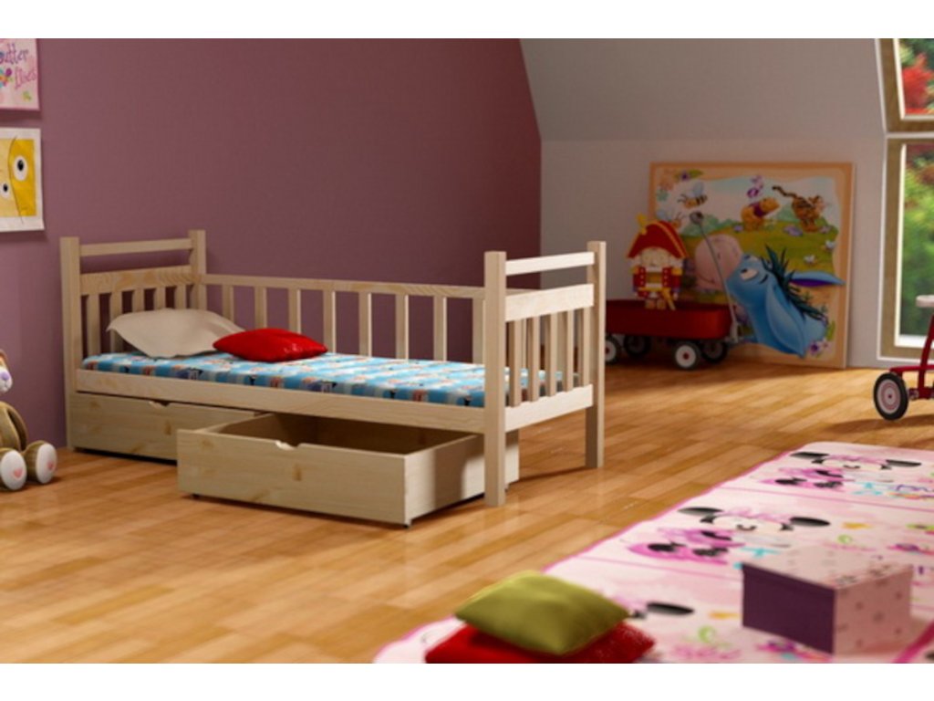 Dětská postel se zábranou BRUNA PINE 90x190 vč. roštu + ŠUPLÍKY