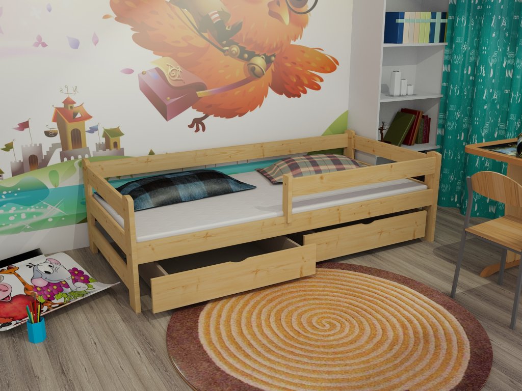 Dětská postel se zábranou JOLET PINE 90X190 vč. roštu + ŠUPLÍKY