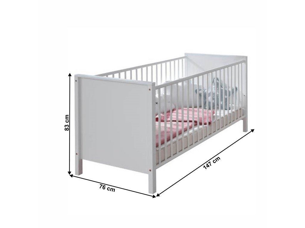 Rozměry: 147x76x83 cm, doporučená matrace 70x140 cm (maximální výška 10 cm)
