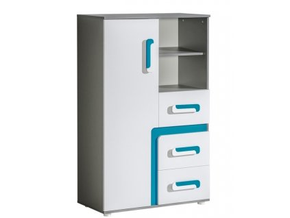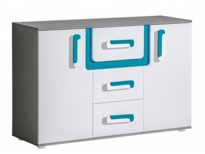 Komoda do dětského pokoje SOLETTA 7 je ideální volbou. Kombinace antracitového korpusu a tyrkysových dvířek působí svěže a originálně – perfektně zapadne do pokoje menších dětí...