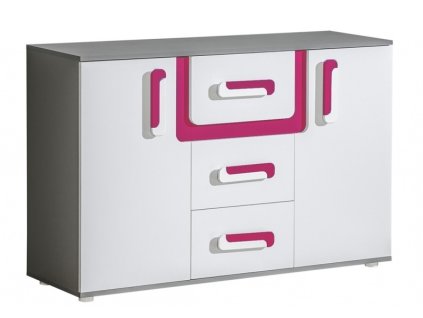 Komoda do dětského pokoje SOLETTA 7 je ideální volbou. Kombinace antracitového korpusu a růžových dvířek působí hravě a svěže – perfektně zapadne do pokoje menších dětí i...
