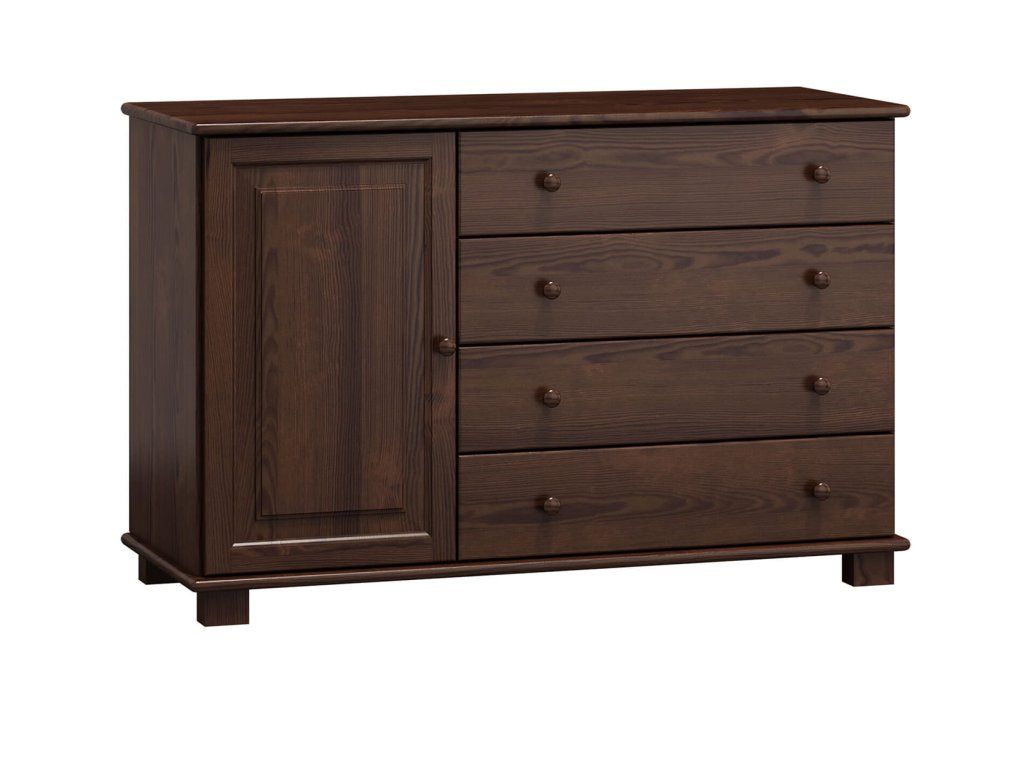 Dřevěná komoda CLASSIC KN-34 kombinuje tradiční vzhled přírodního masivu borovice s praktickou funkcionalitou. Tato zásuvková komoda s dvířky je vyrobena z prvotřídního borovicového dřeva o síle 2,2 cm, což zajišťuje vysokou pevnost a dlouhou životnost.