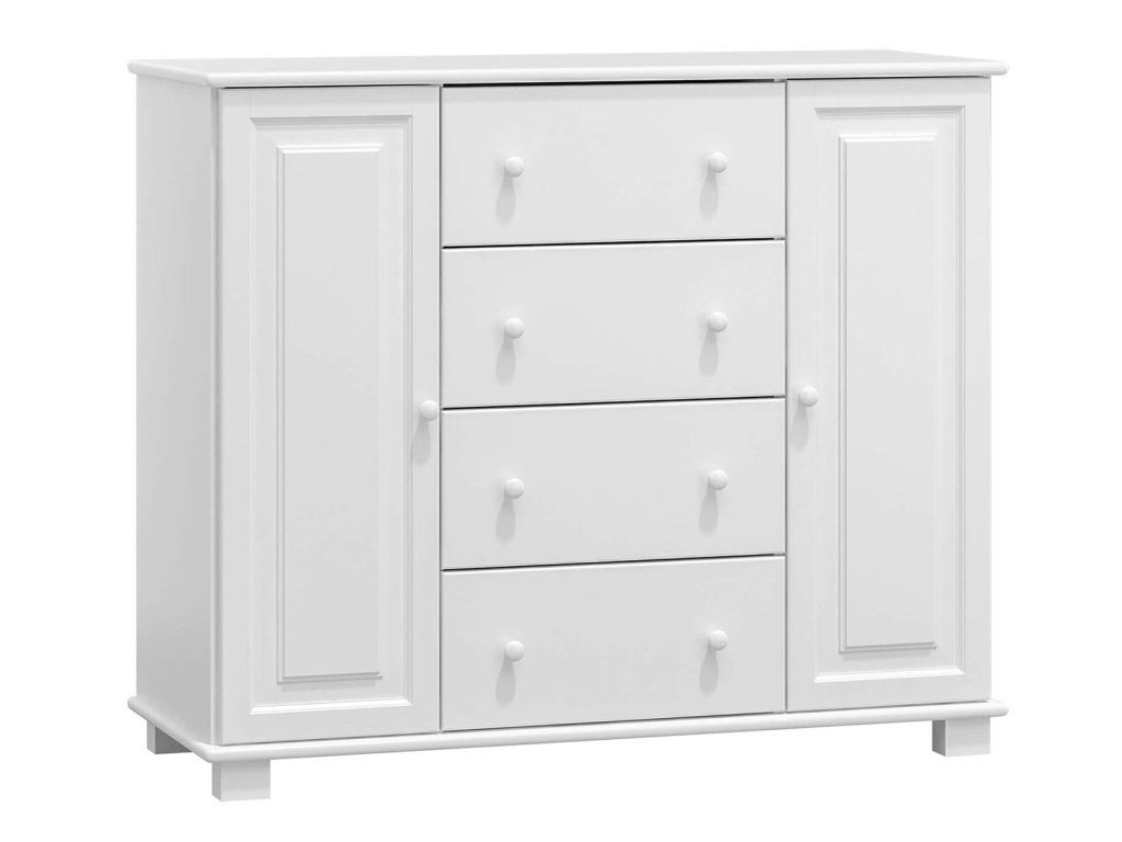 Dřevěná komoda CLASSIC KN-40 je vyrobena z masivu borovice o síle 2,2 cm a nabízí kombinaci pevnosti, elegance a praktičnosti. Tento kus nábytku se hodí do ložnice, obývacího pokoje nebo pracovny a přináší dostatek úložného prostoru díky zásuvkám a dvířkům.