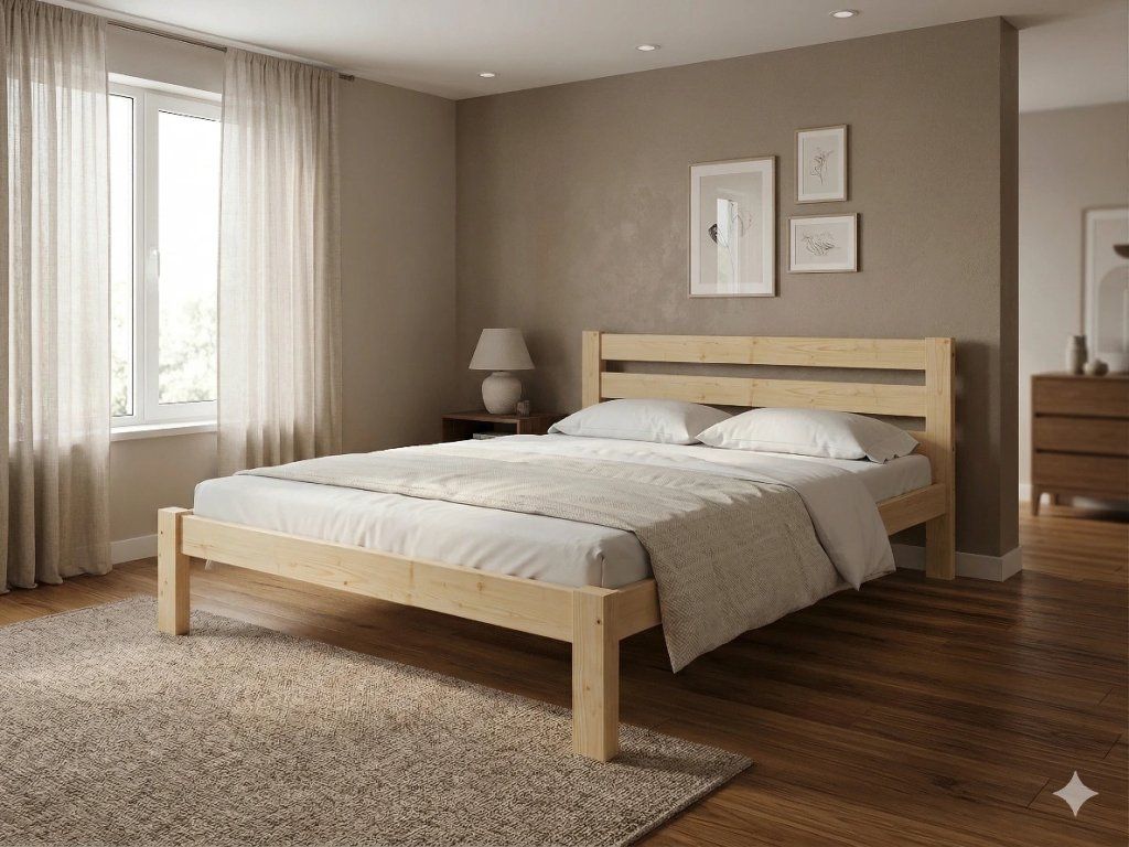 Dřevěná postel 120x200 cm z masivní borovice – VMK11A nabízí pevnost, komfort a přírodní eleganci. Je ideální pro menší ložnice, studentské pokoje nebo hostinské místnosti, kde je důležitá stabilita a dlouhá životnost. Postel je dodávána včetně laťového roštu