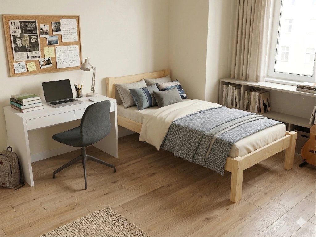 Dřevěná postel 80x200 cm z masivní borovice – VMK15A nabízí pevnost, komfort a přírodní eleganci. Je ideální pro menší ložnice, studentské pokoje nebo hostinské místnosti, kde je důležitá stabilita a dlouhá životnost. Postel je dodávána včetně laťového roštu