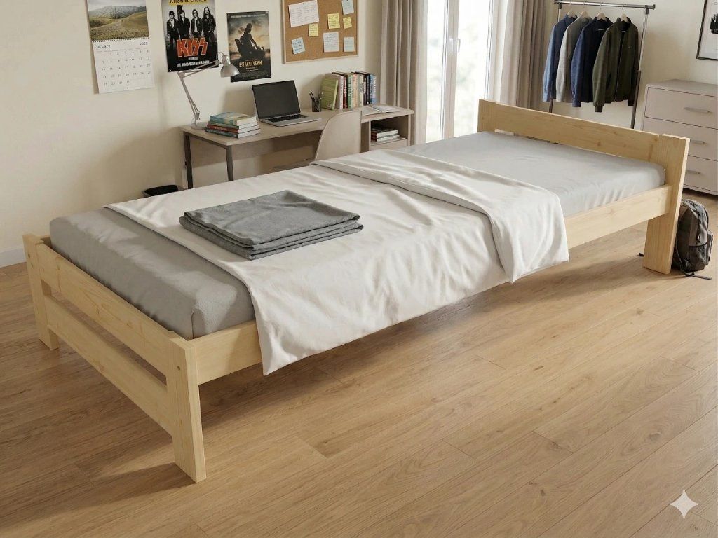 Dřevěná postel 80x200 cm z masivní borovice – VMK6B nabízí pevnost, komfort a přírodní eleganci. Je ideální pro menší ložnice, studentské pokoje nebo hostinské místnosti, kde je důležitá stabilita a dlouhá životnost. Postel je dodávána včetně laťového roštu
