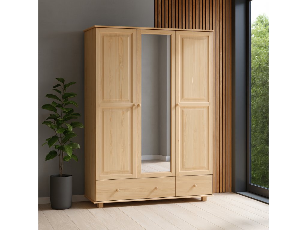 Dřevěná šatní skříň CLASSIC SZ-65b – masiv borovice, šíře 133 cm