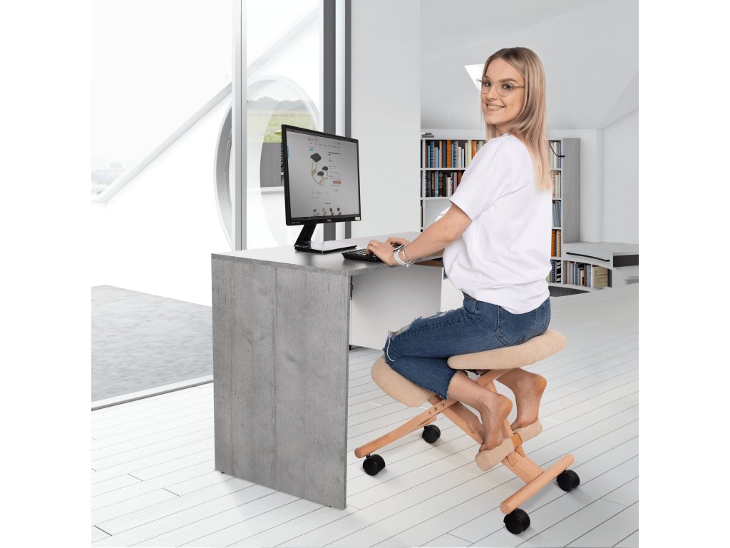 Zajistěte svému tělu pohodlí a správné držení při práci u počítače s ergonomickou klekačkou EITAN. Elegantní spojení krémového čalounění a pevného bukového dřeva vnese do vašeho pracovního prostoru styl a funkčnost.