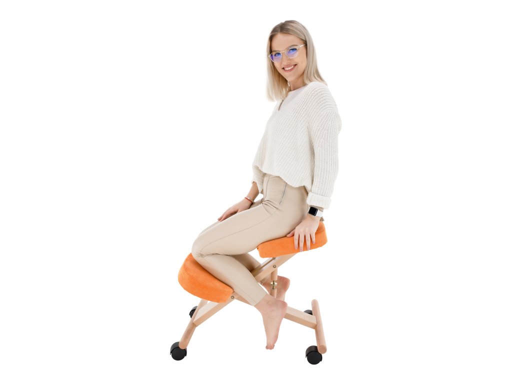 Ergonomická klekačka KAITO oranžová / buk – pohodlí a podpora při práci u stolu