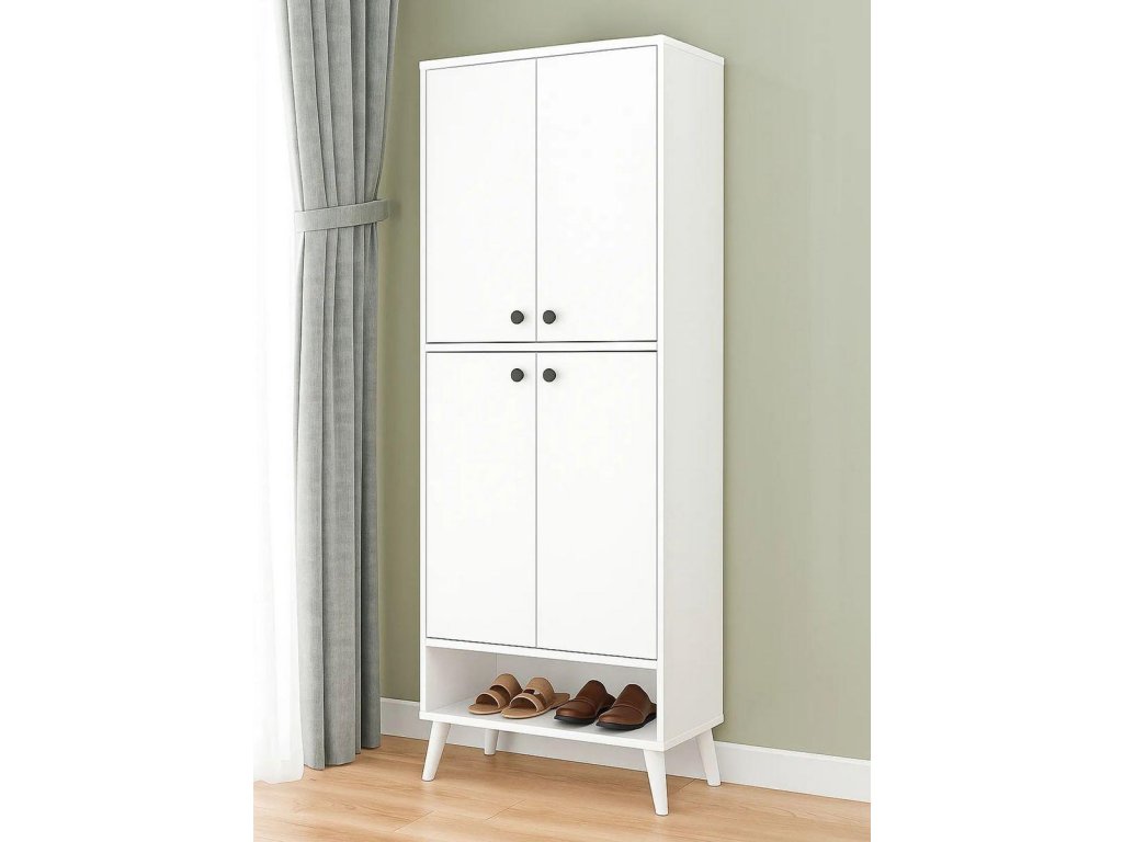 Konstrukce je vyrobena z 18 mm silného lamina, který se vyznačuje odolností, snadnou údržbou a dlouhou životností. Uvnitř se nacházejí čtyři police uzavíratelné čtyřmi dvířky, které poskytují dostatek úložného prostoru pro obuv, doplňky i domácí potřeby. Díky nastavitelným policím s rozsahem 10 mm lze vnitřní prostor přizpůsobit individuálním potřebám.