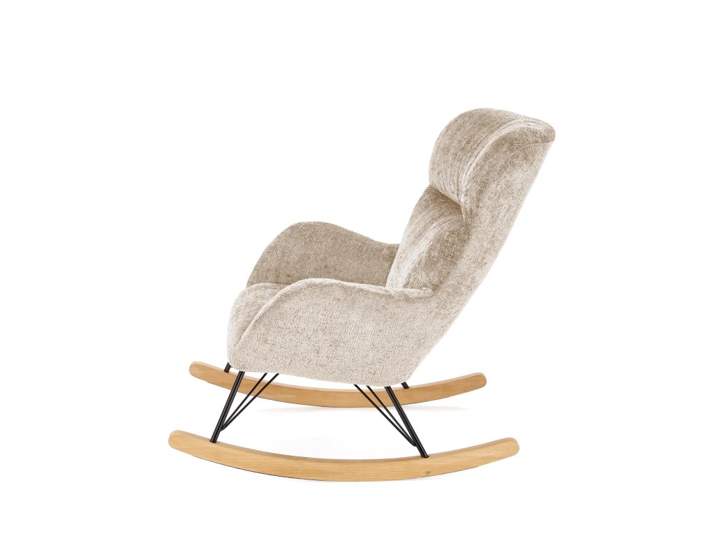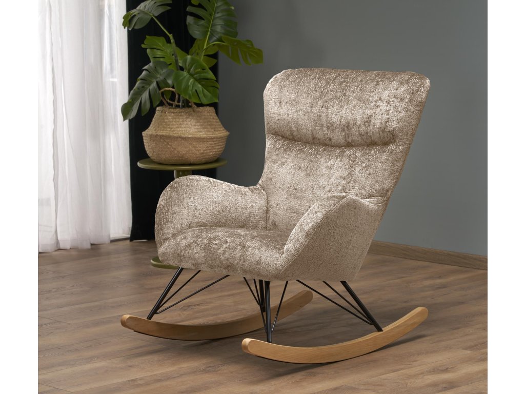 Houpací křeslo DANIEL v elegantní béžové barvě je skvělou volbou pro všechny, kteří hledají kombinaci pohodlí, funkčnosti a stylu. Čalouněný sedák a opěradlo poskytují měkké a příjemné posezení, které zpříjemní každou chvíli odpočinku. Stabilní základna ve tvaru skluznic umožňuje plynulé a jemné houpání, jež přispívá k relaxaci a uvolnění.