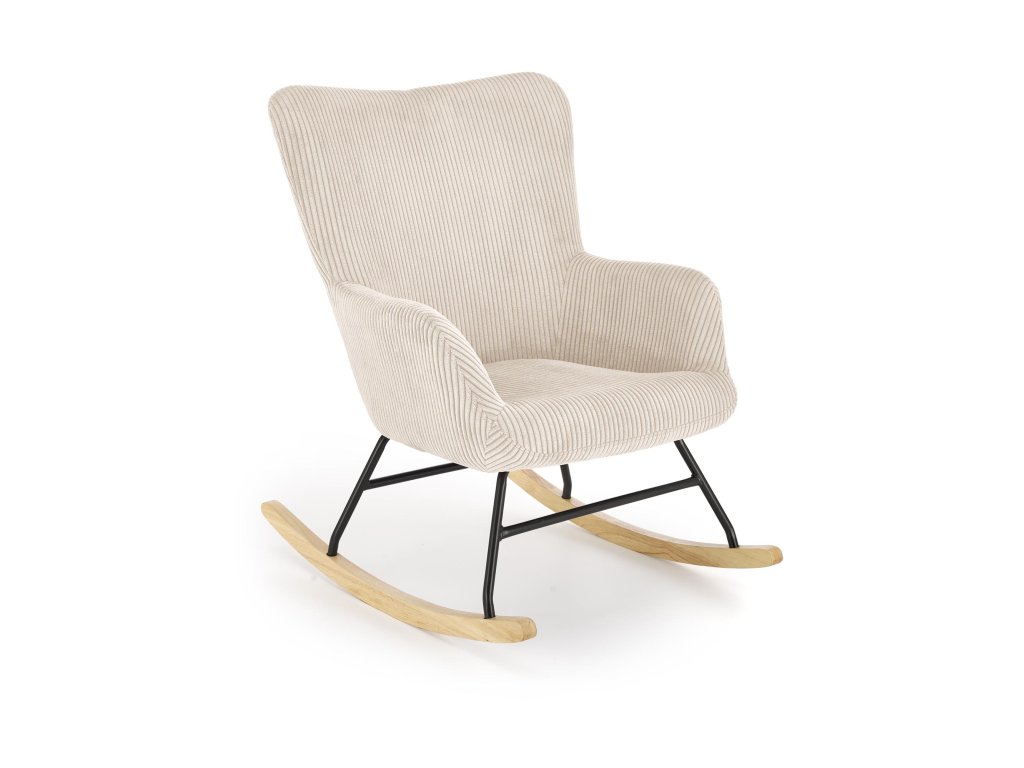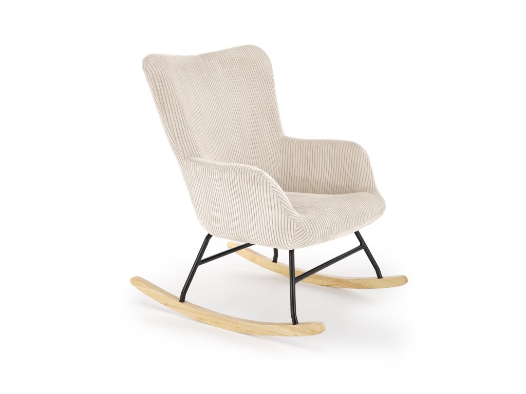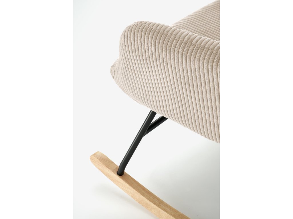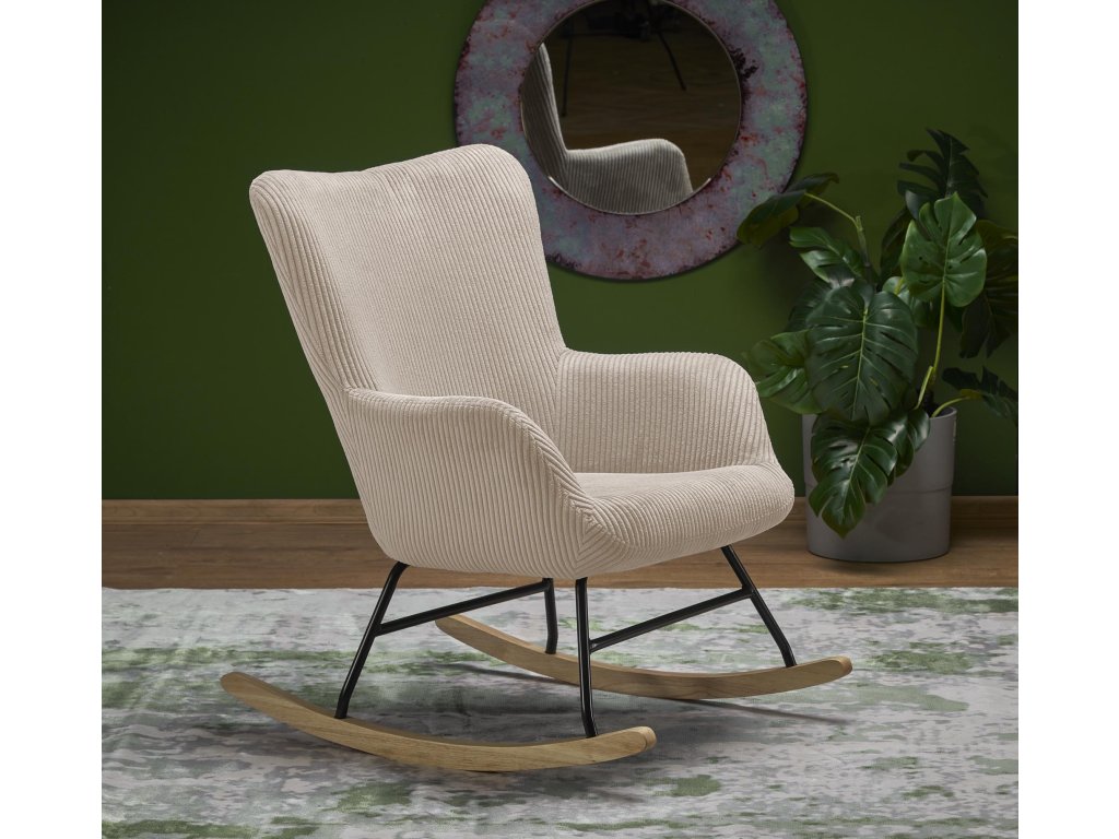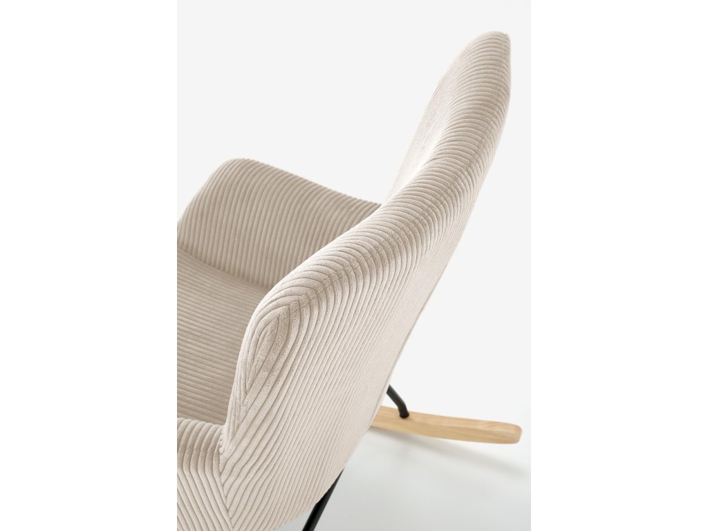 Houpací křeslo NIALL přináší do vašeho interiéru výjimečné spojení klasického designu a moderního komfortu. Jeho čalounění z měkké HYPER manšestrové tkaniny působí elegantně a zároveň příjemně na dotek. Jemná krémová barva a dřevěné běhouny vytvářejí harmonický celek s lehkým retro nádechem, který skvěle doplní jak moderní, tak tradiční interiéry.