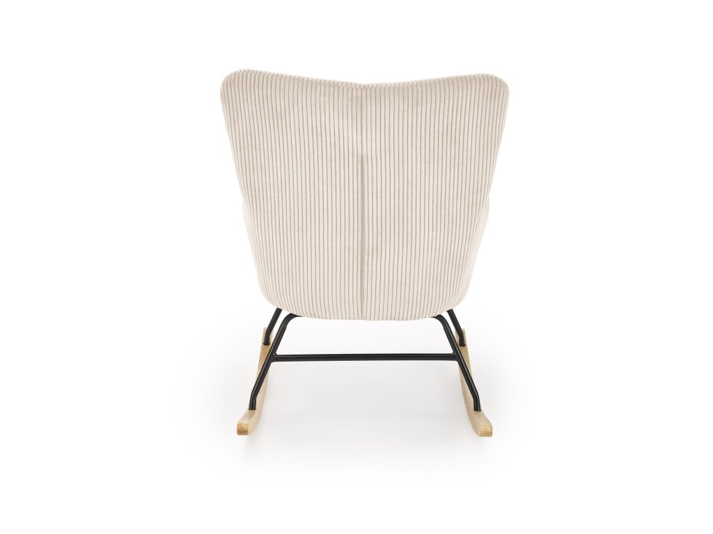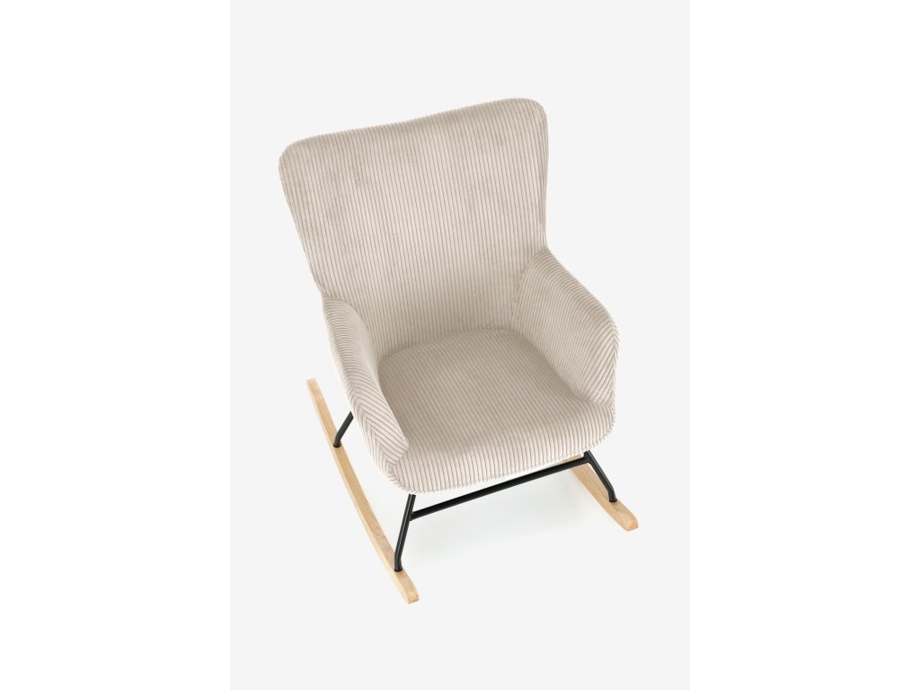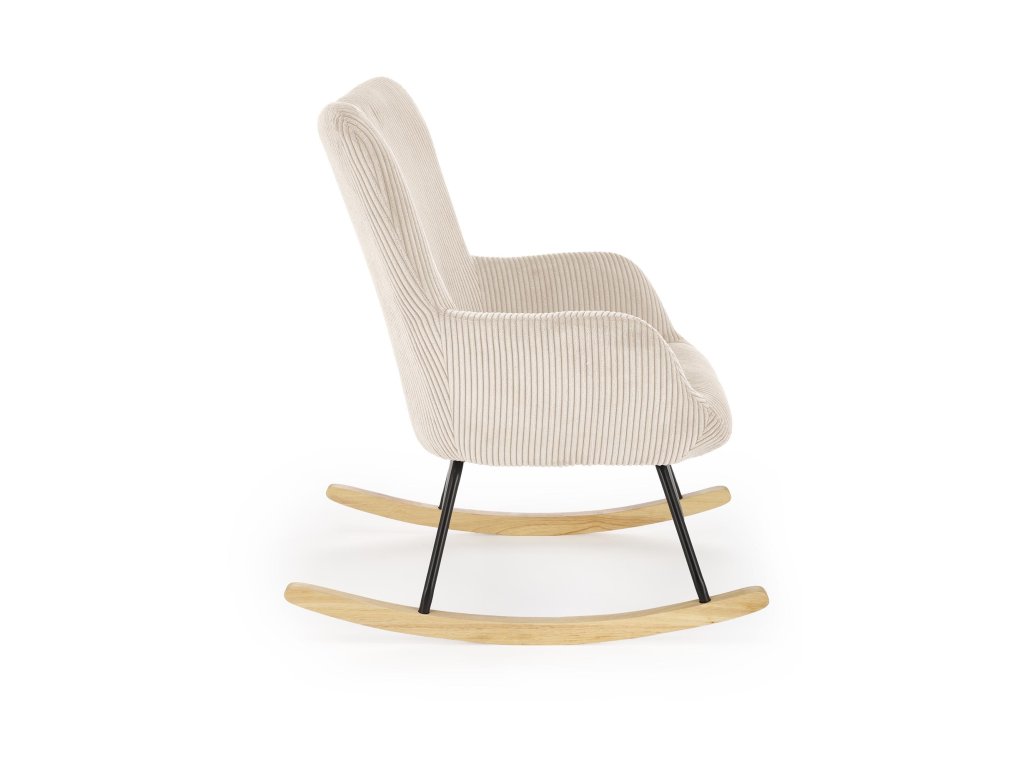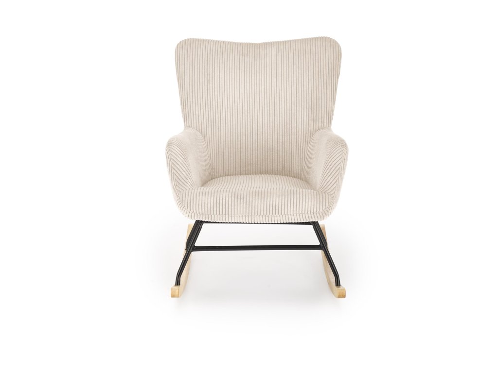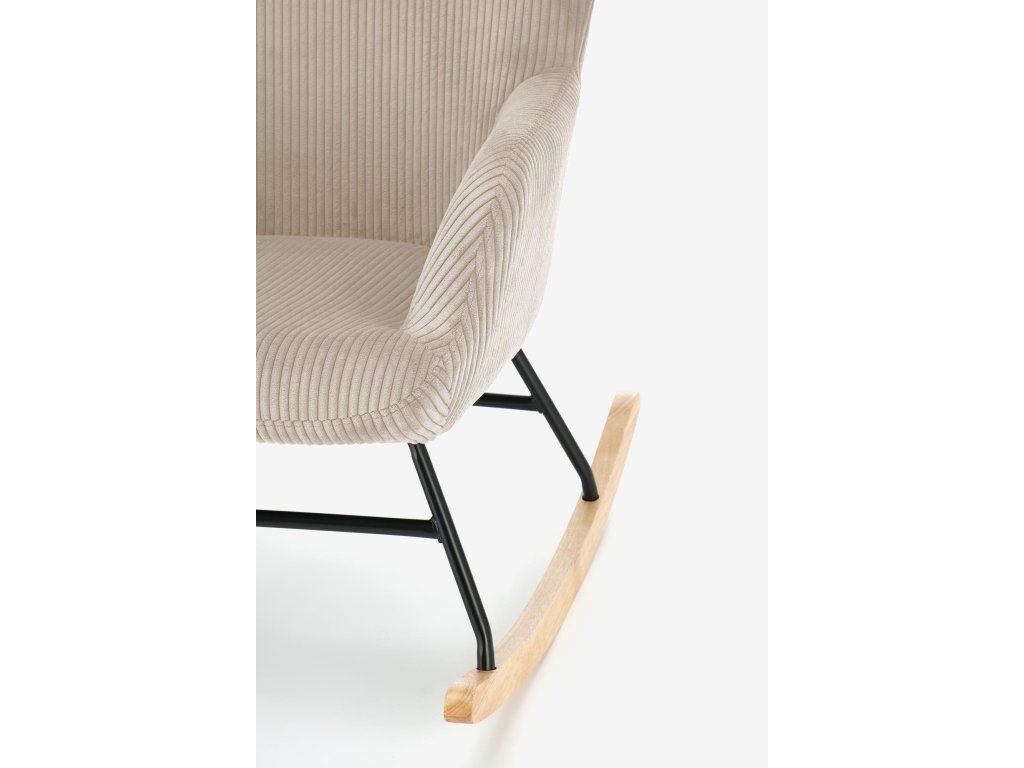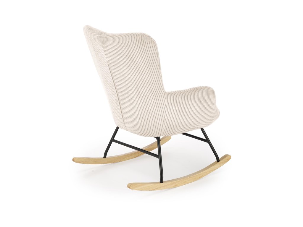 Houpací křeslo NIALL přináší do vašeho interiéru výjimečné spojení klasického designu a moderního komfortu. Jeho čalounění z měkké HYPER manšestrové tkaniny působí elegantně a zároveň příjemně na dotek. Jemná krémová barva a dřevěné běhouny vytvářejí harmonický celek s lehkým retro nádechem, který skvěle doplní jak moderní, tak tradiční interiéry.