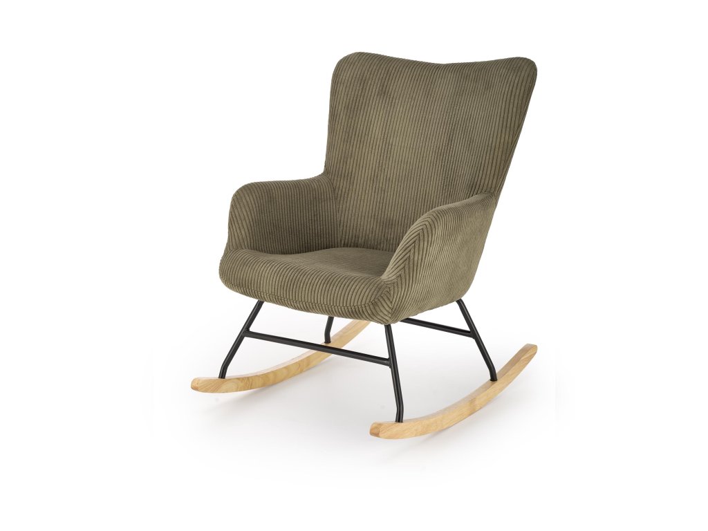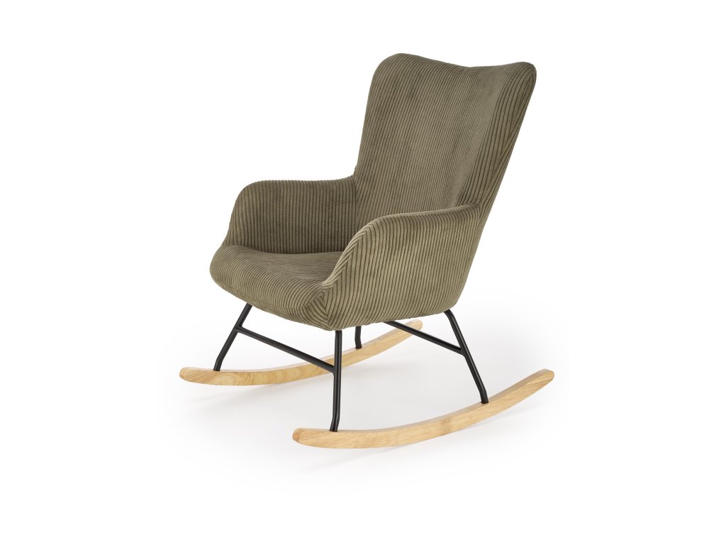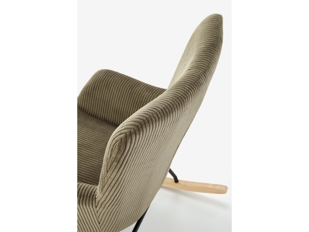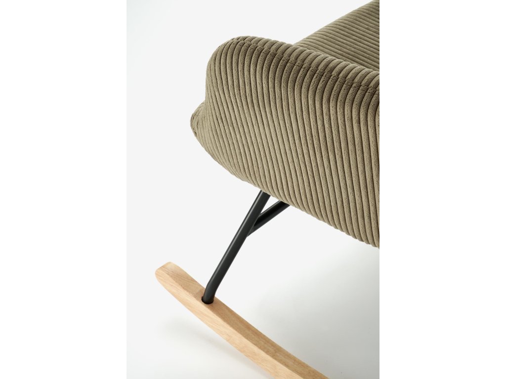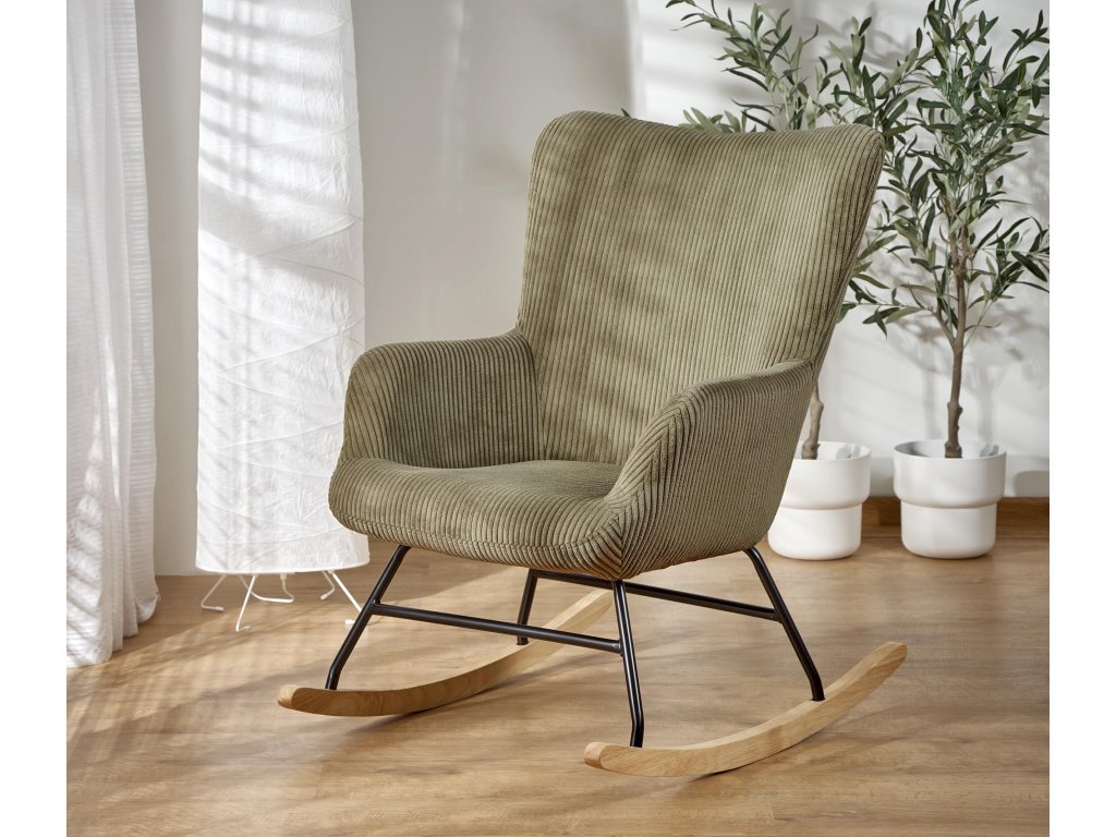 Houpací křeslo NIALL přináší do vašeho interiéru výjimečné spojení klasického designu a moderního komfortu. Jeho čalounění z měkké HYPER manšestrové tkaniny působí elegantně a zároveň příjemně na dotek. Jemná olivová barva a dřevěné běhouny vytvářejí harmonický celek s lehkým retro nádechem, který skvěle doplní jak moderní, tak tradiční interiéry.